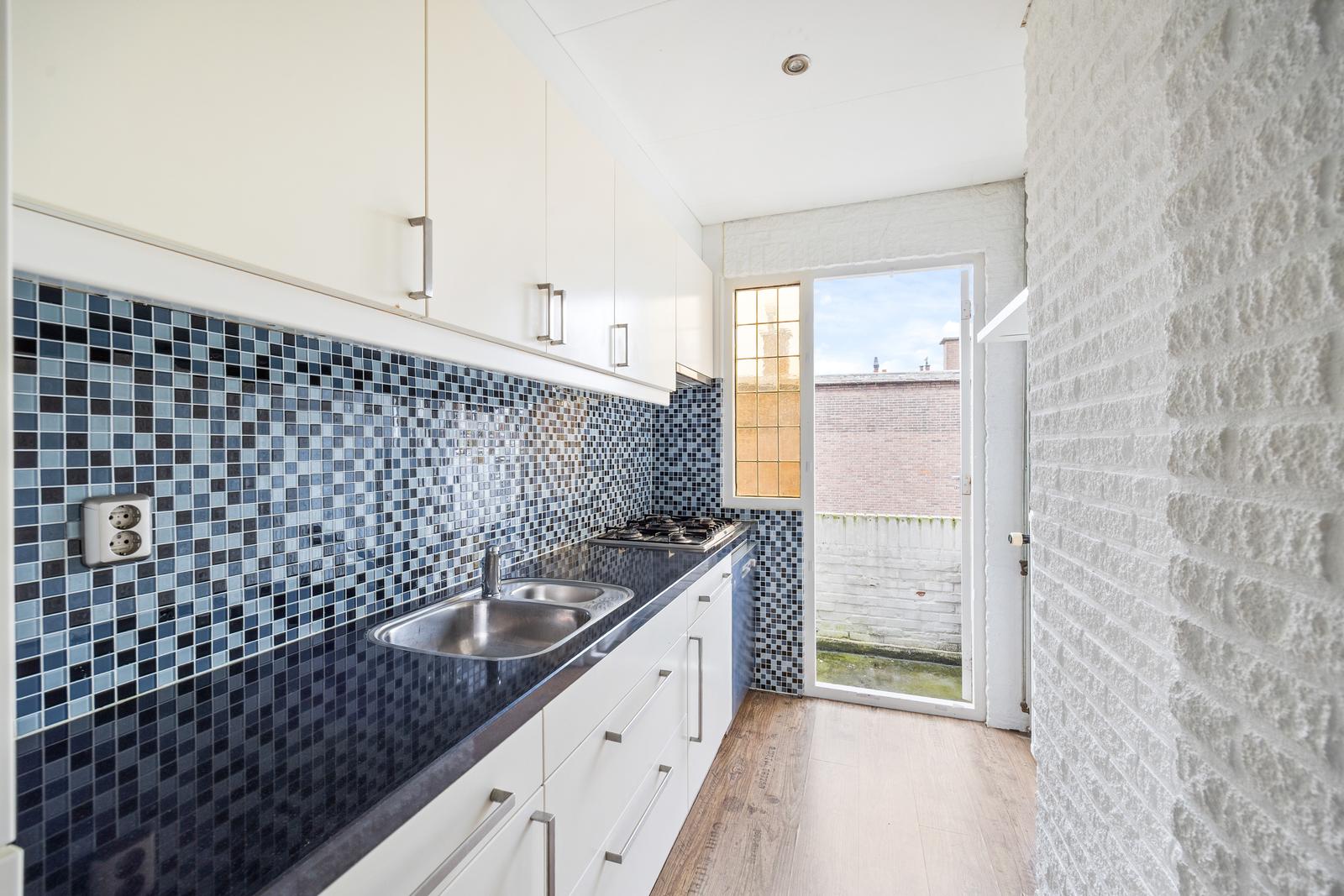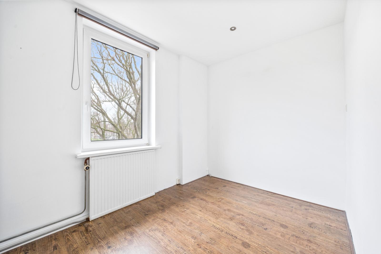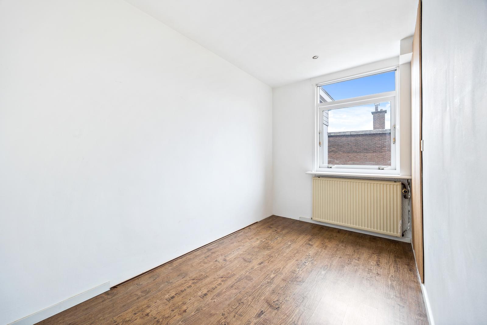 Overloop met vaste kast en separaat toilet met fonteintje; goed bemeten slaapkamer aan de voorzijde en ruime slaapkamer aan de achterzijde; royale en lichte (doorgebroken) woon-/eetkamer met speelse erker aan de voorzijde en fraai uitzicht op het groene plantsoen; nette (dichte) keuken aan de achterzijde met diverse inbouw apparatuur en toegang tot het (woningbrede) achterbalkon (NO) met balkonkasten.