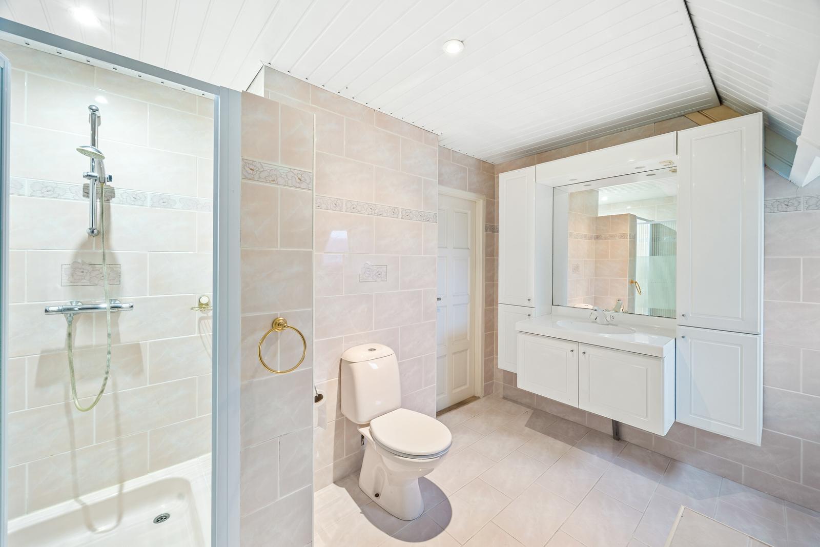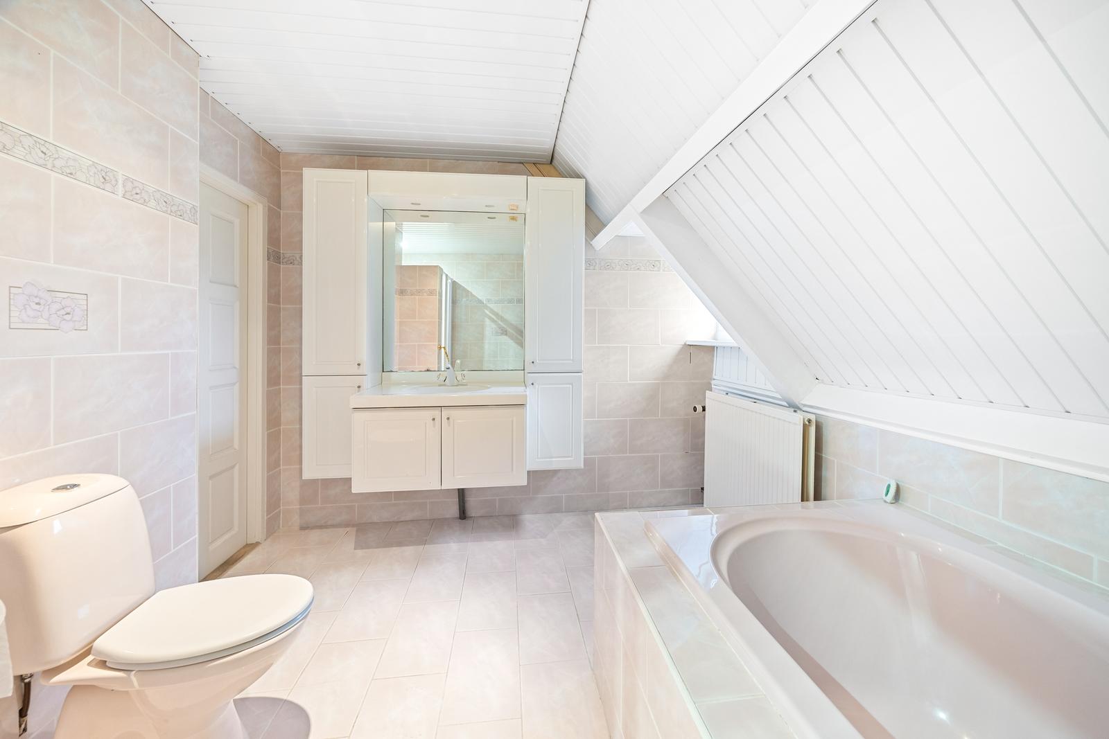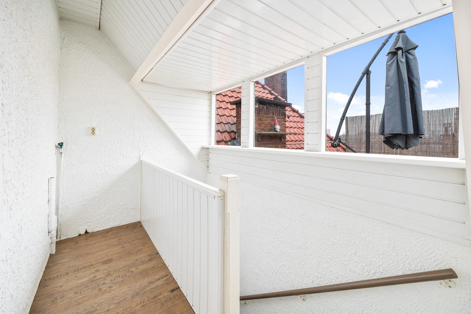 Overloop met aansluitingen voor de wasmachine en droger; nette badkamer met douche, ligbad, wastafelmeubel, tweede toilet, radiator en daglichtinval; ruime slaapkamer over de gehele lengte met toegang tot het zonnige dakterras van circa 27 m2 met schitterend vrij uitzicht.