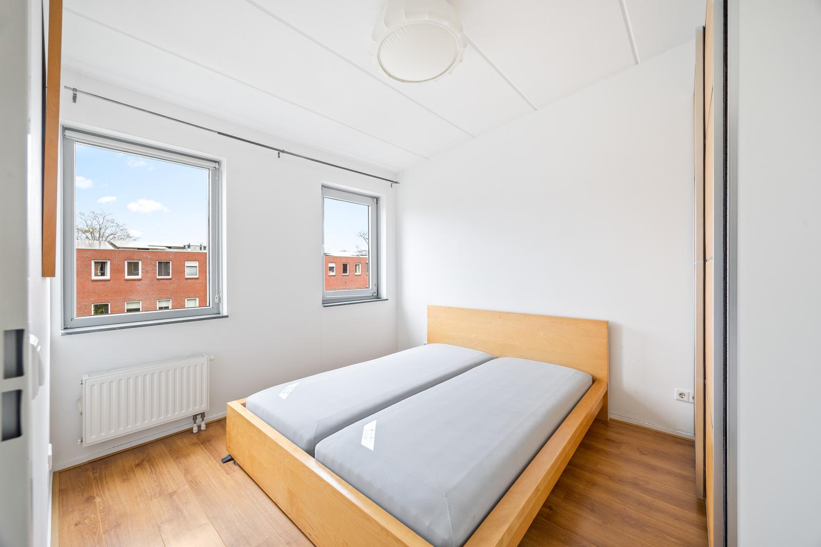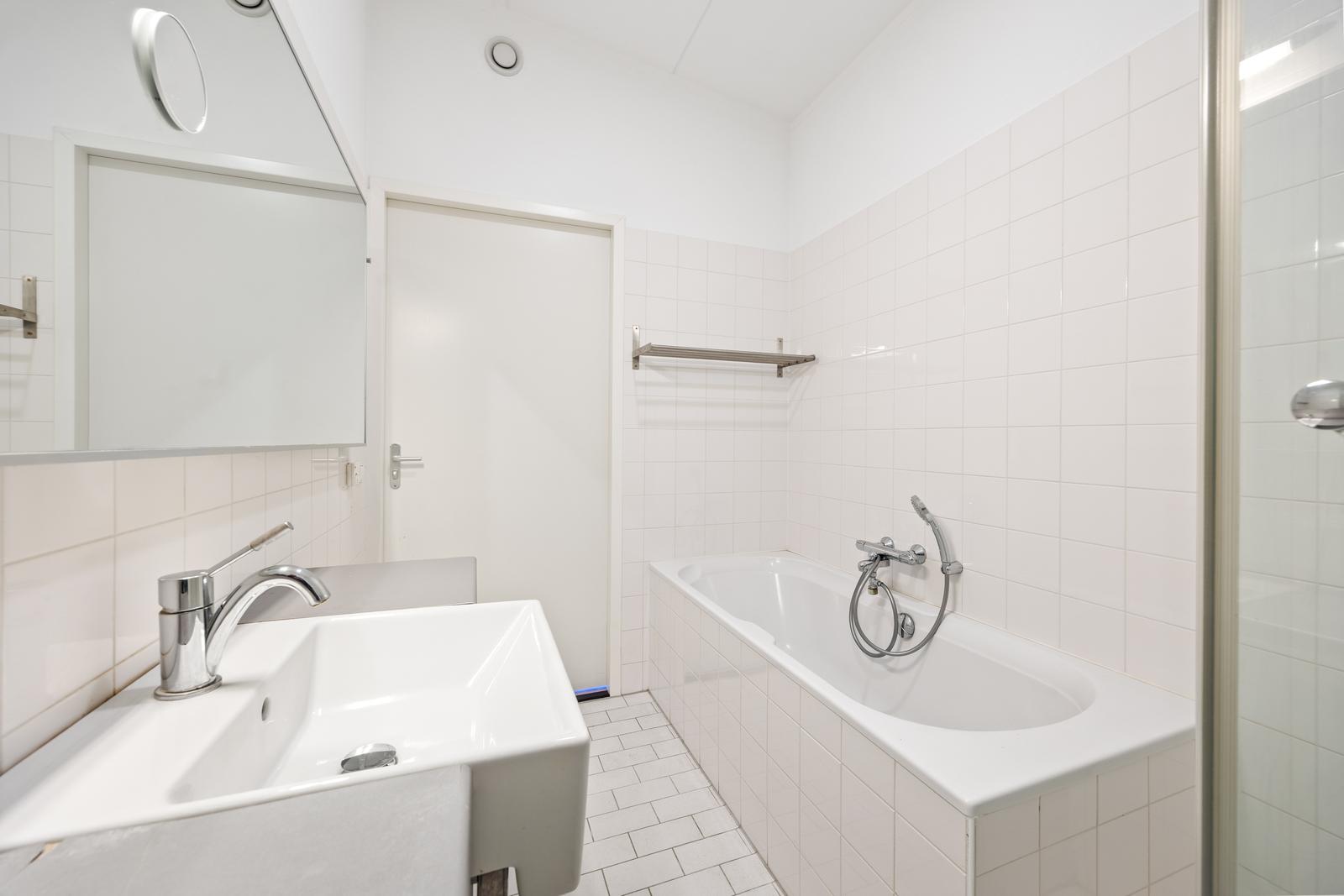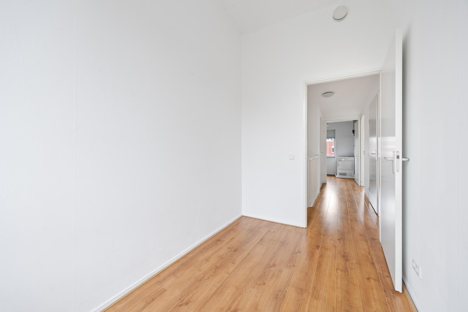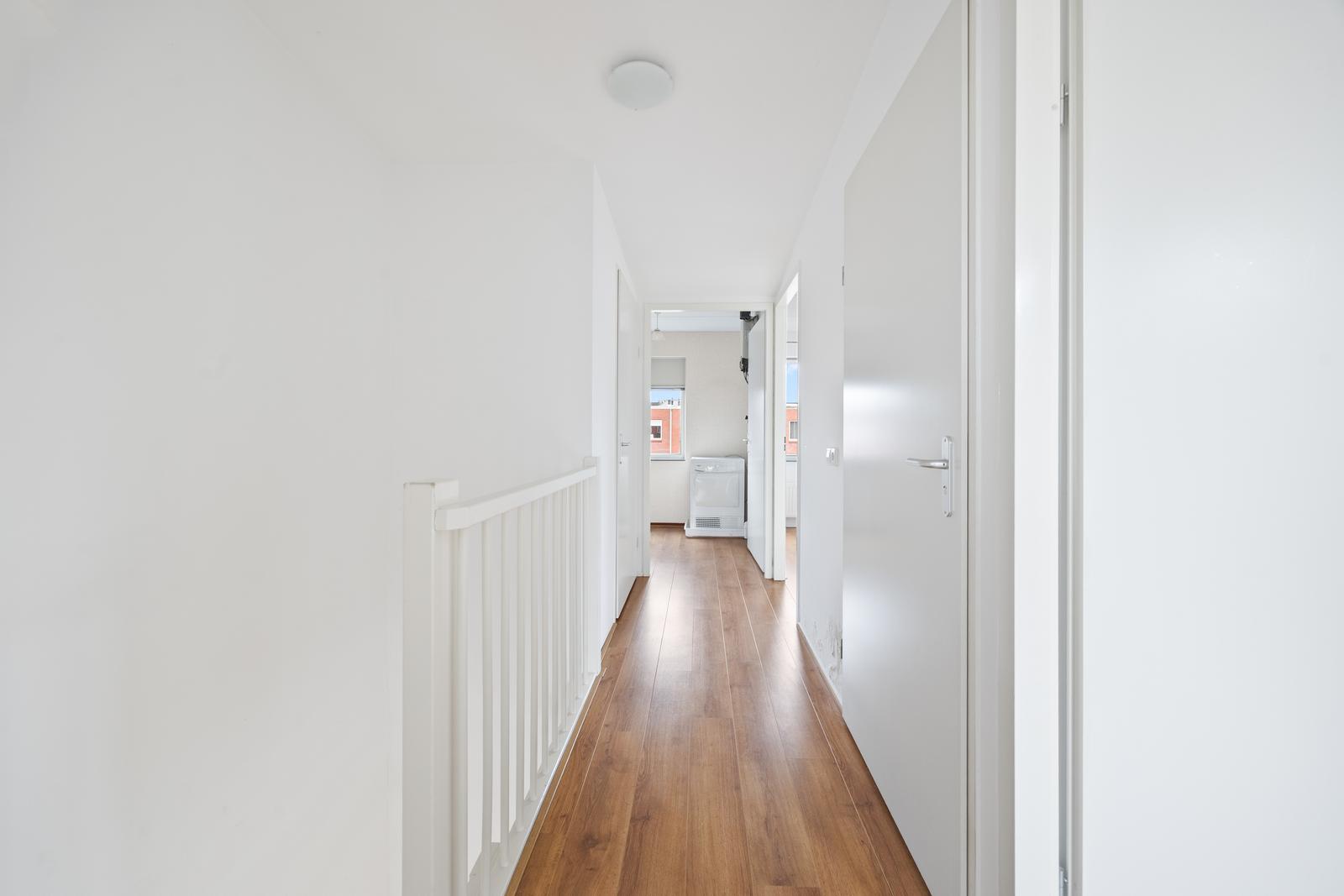 Overloop met separate toiletruimte. Voorzij slaapkamer met hoog plafond. Ruime hoofd slaapkamer aan de voorzijde met eveneens hoog plafond. Ruime slaapkamer aan de achterzijde. Nette (tussengelegen) badkamer met douche, ligbad en wastafelmeubel en radiator. Achterzij kamer met opstelplaats CV-ketel, WTW-unit, omvormer van de zonnepanelen en aansluitingen voor de wasmachine en droger.