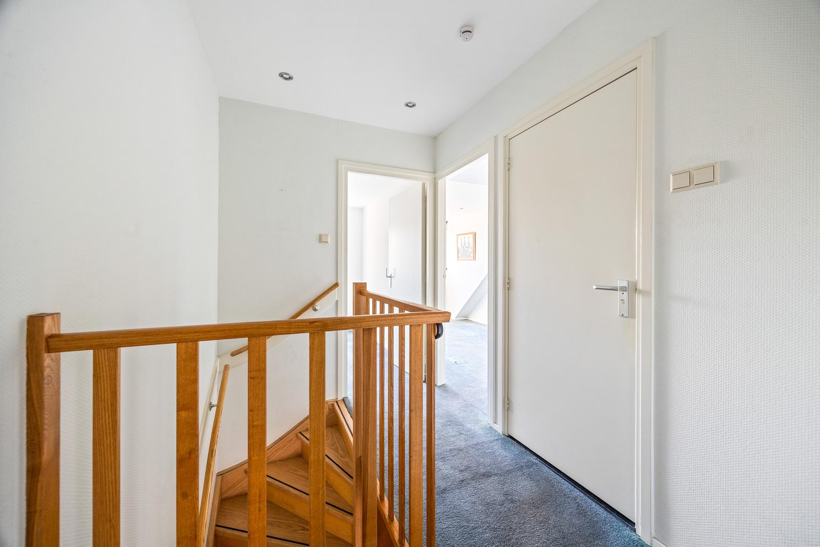 Overloop met toegang tot de bergvliering met opstelplaats van de CV-ketel. Ruime (gevelbrede) slaapkamer aan de voorzijde. Twee slaapkamers van goed formaat aan de achterzijde met dakkapel. Nette (tussengelegen) badkamer met inloopdouche, wastafel, handdoekradiator, toilet en bidet.