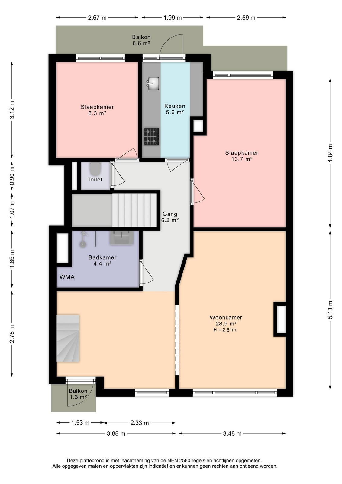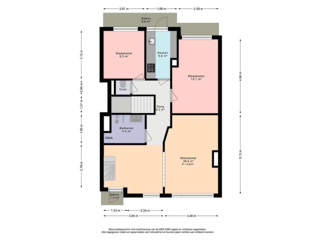 - Exact gemeten volgens de Meetinstructie Gebruiksoppervlakte woningen.