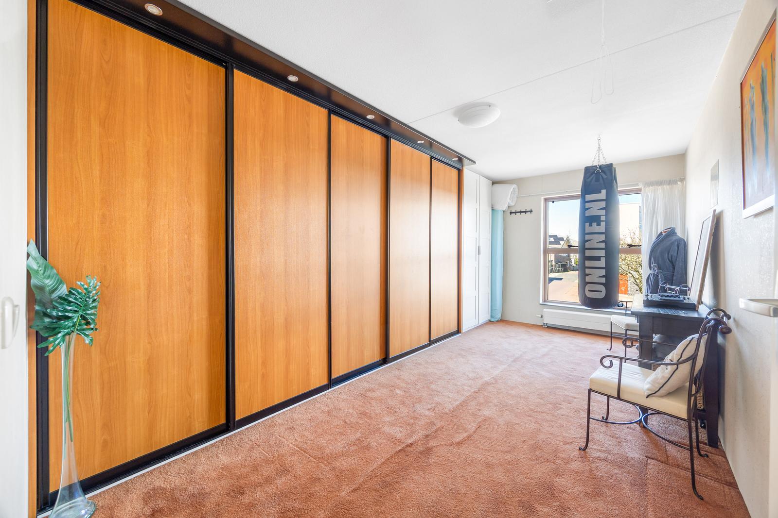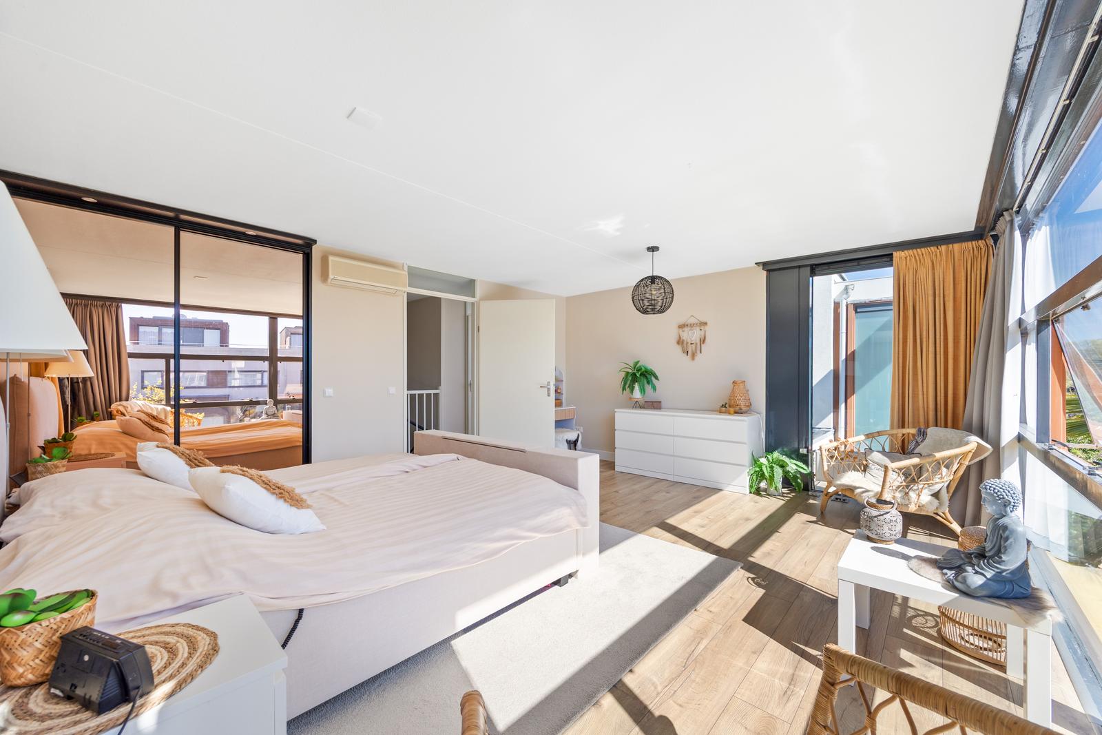 Aan de achterzijde bevindt zich de riante hoofdslaapkamer voorzien van airconditioning, een inbouw schuifwandkast en directe toegang tot het zijbalkon. Aan de voorzijde bevinden zich twee ruime slaapkamers, waarvan één is voorzien van een inbouwkast met schuifdeuren.