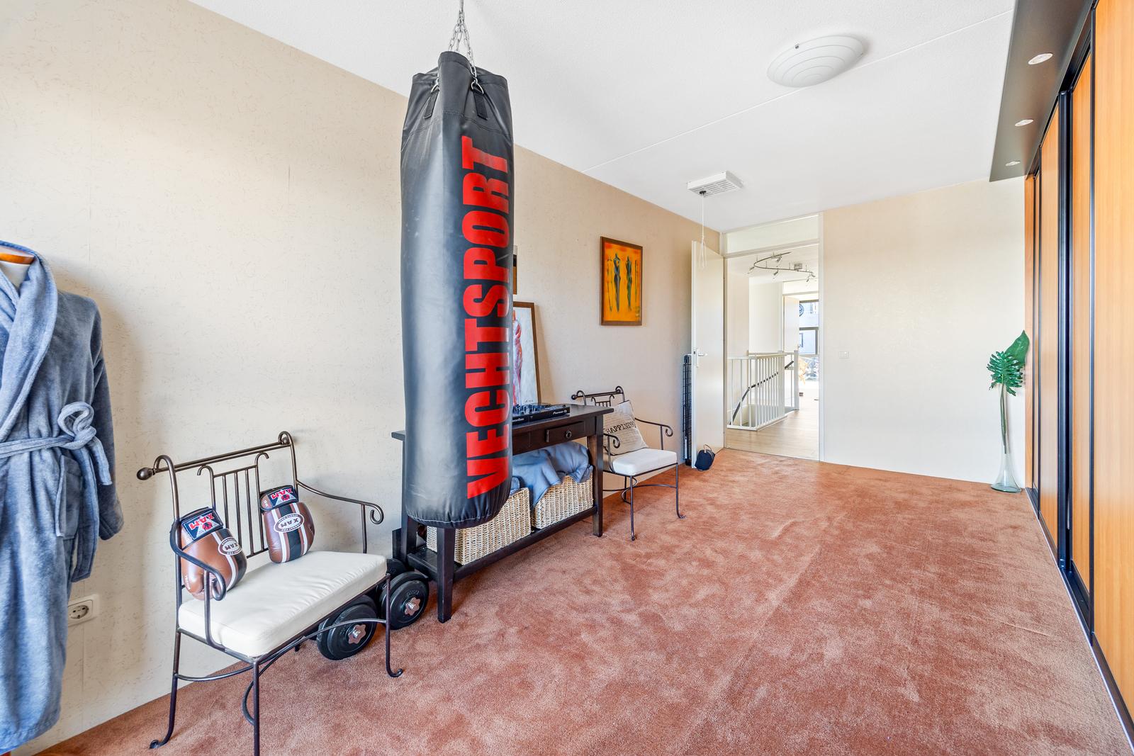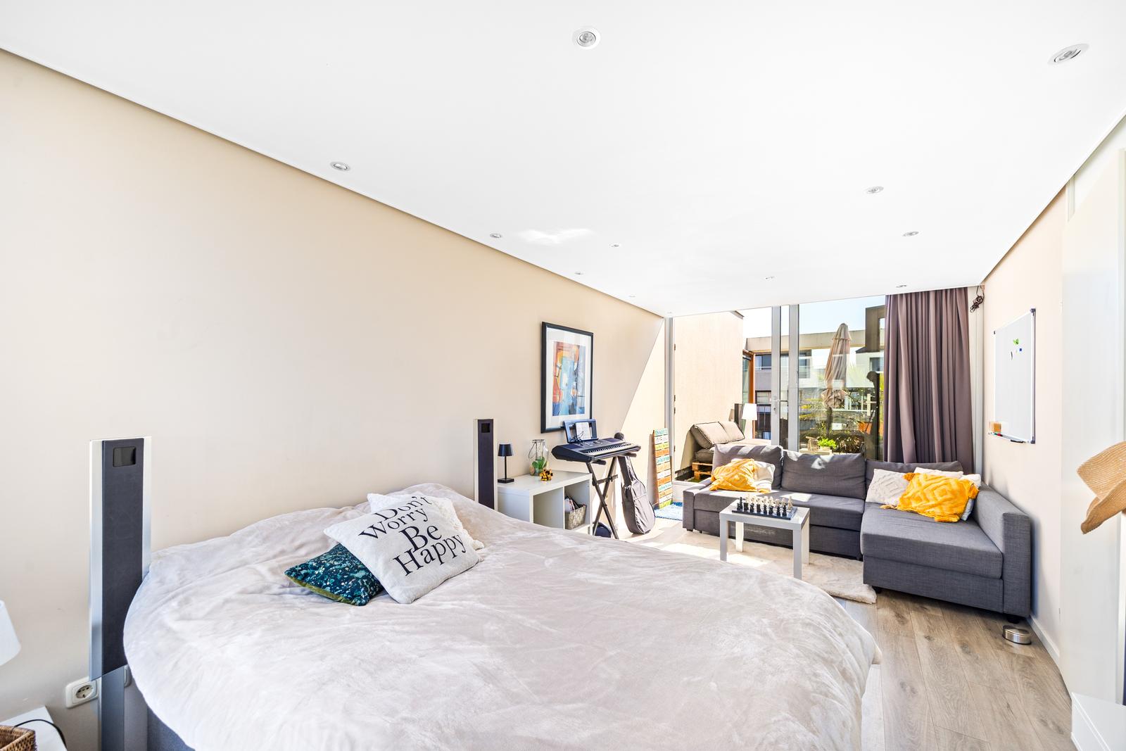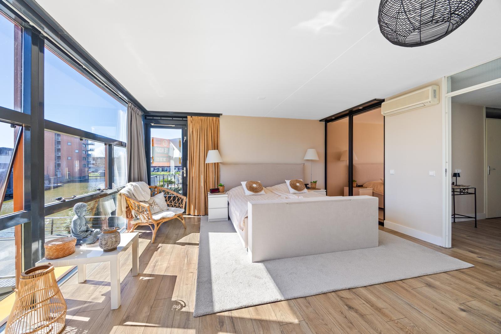 De vierde slaapkamer is gelegen aan de zijkant en biedt toegang tot een heerlijk ruim terras op het zuidoosten met uitzicht op het water.