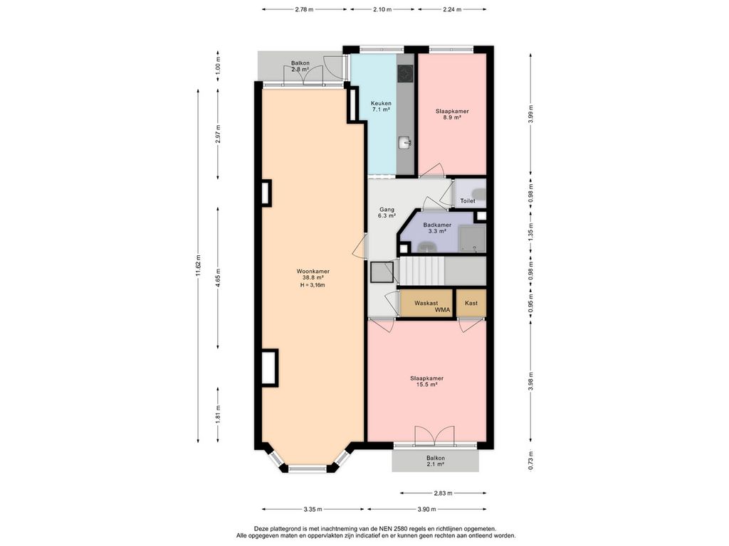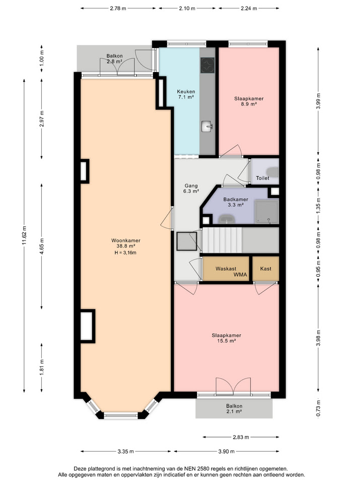 - Exact gemeten volgens de Meetinstructie Gebruiksoppervlakte woningen.