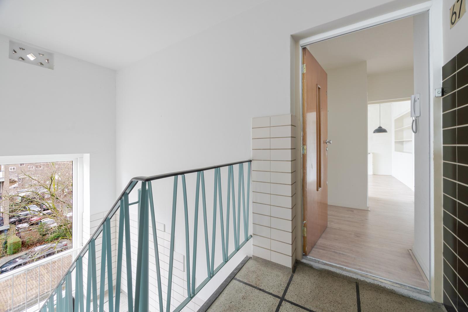 Via de voortuin betreedt u de centraal gesloten entree met bellen- en brievenbustableau en trappenhuis naar de derde verdieping.