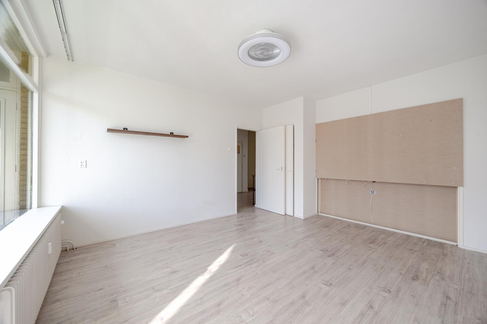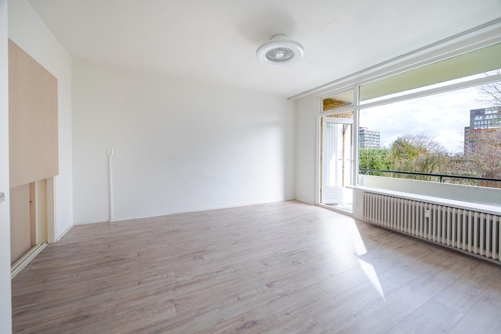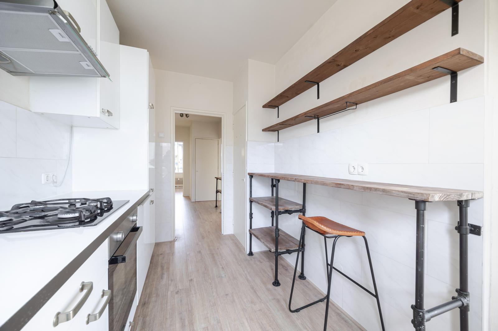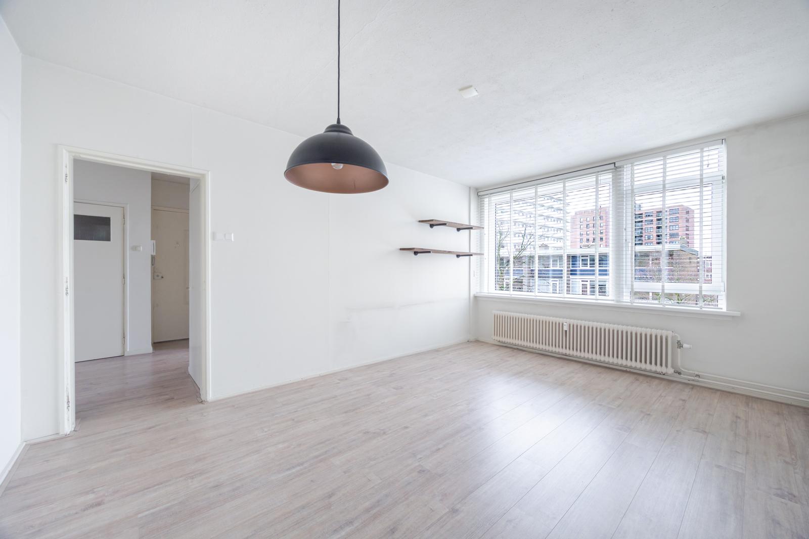 Entree appartement; centrale hal met meterkast, twee vaste kasten, modern separaat toilet en een moderne badkamer met inloopdouche, wastafelmeubel en wasmachine aansluiting; voorzij slaapkamer met vaste kast; royale en lichte woon-/eetkamer aan de voorzijde met leuk vrij uitzicht; achtergelegen ruime tweede slaapkamer met vaste kast; moderne (dichte) keuken aan de achterzijde met composiet werkblad en diverse inbouwapparatuur. Zowel de keuken als de achtergelegen slaapkamer geven toegang tot het zonnige achterbalkon (ZO) met balkonkast.