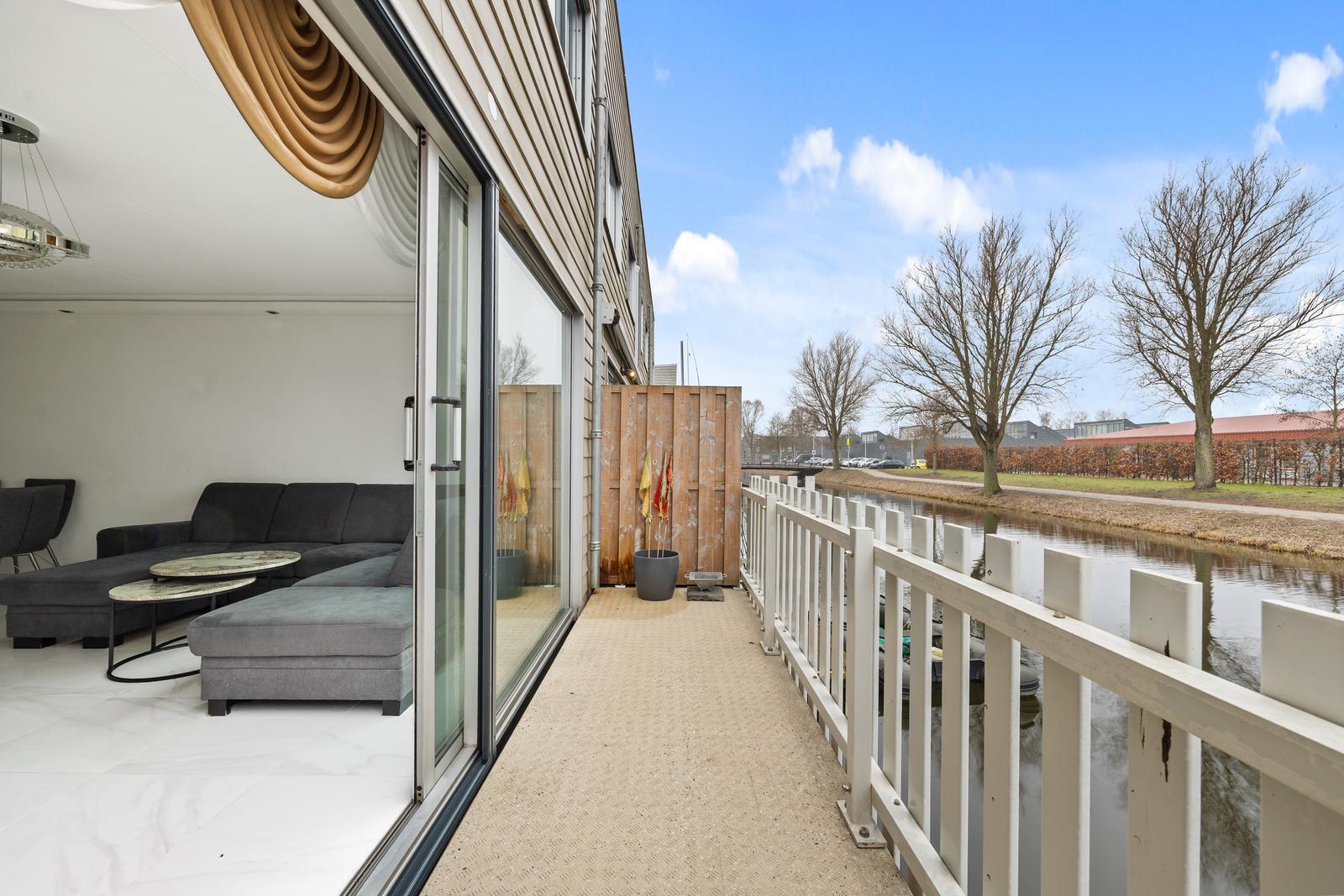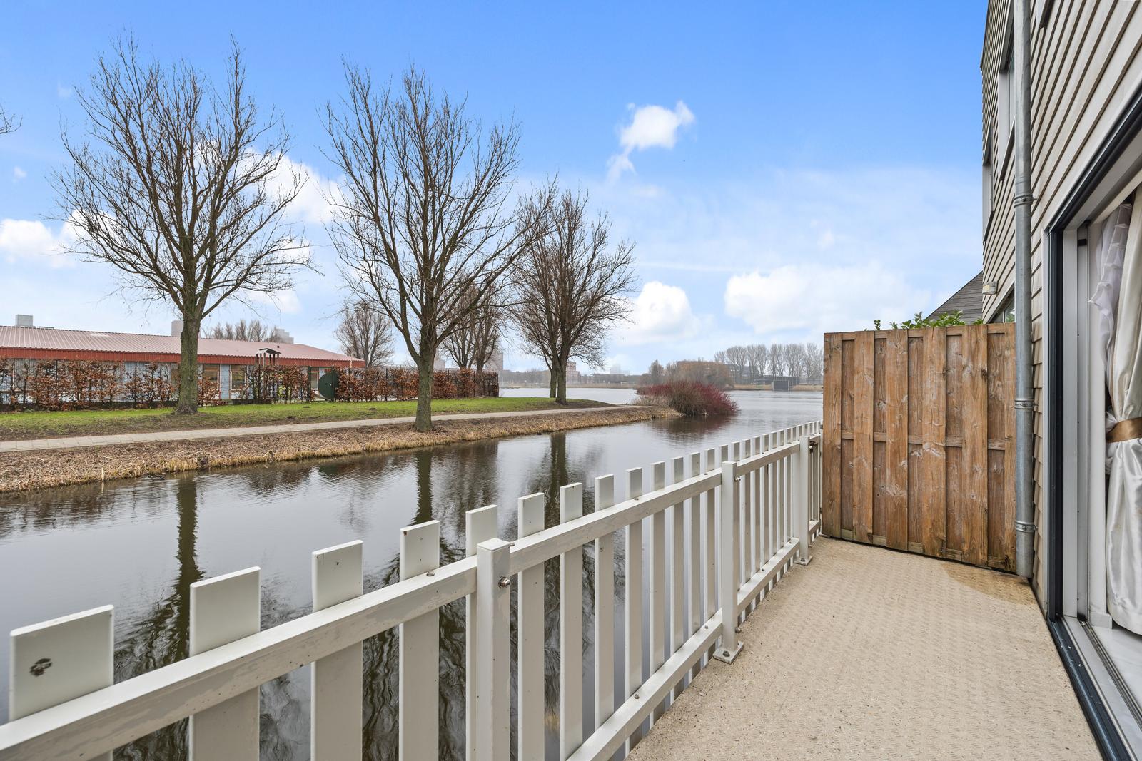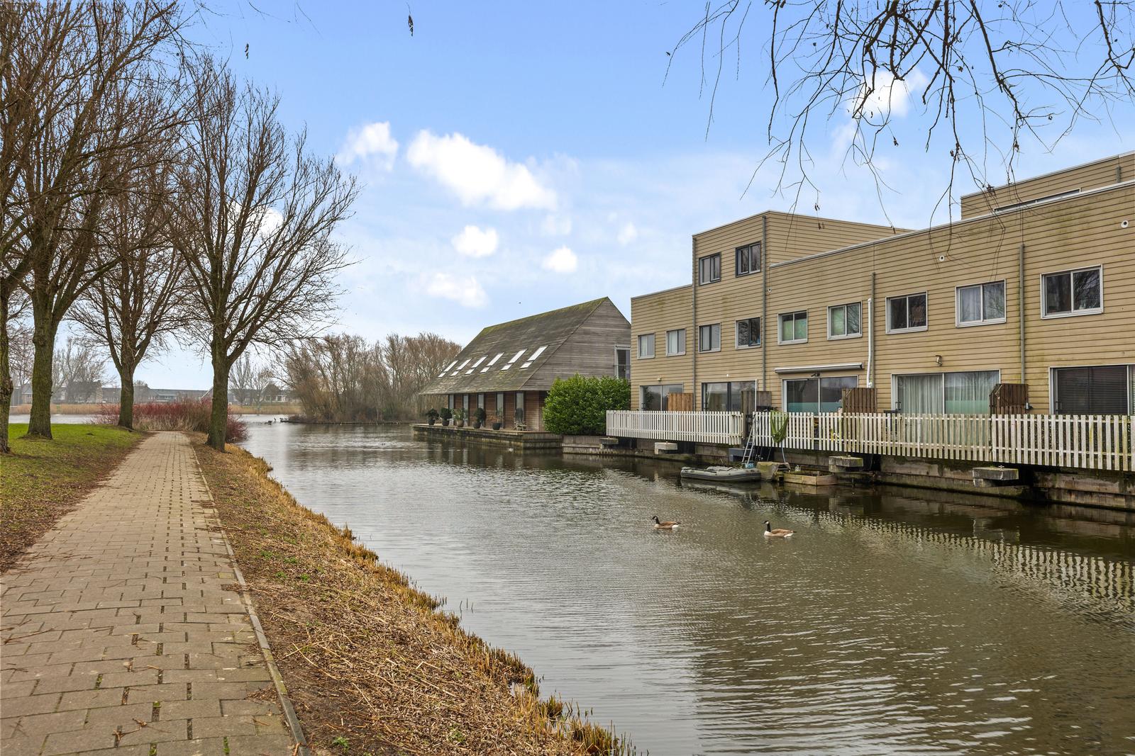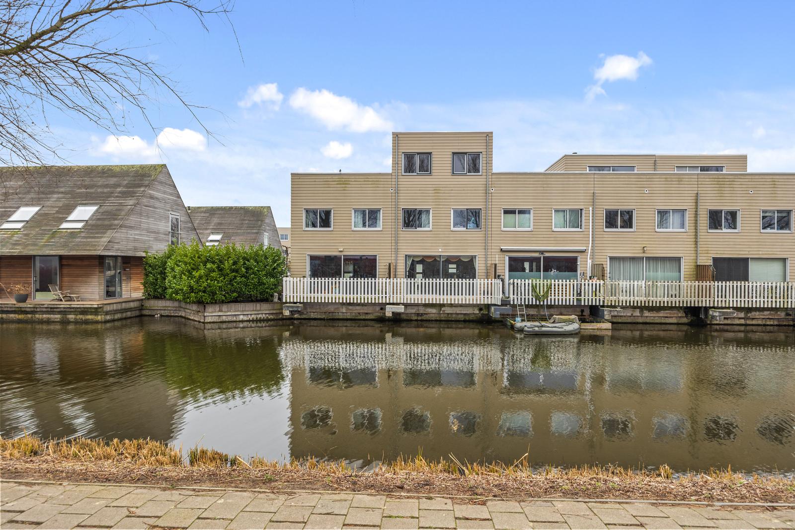 Entree woning met hal, garderobe, meterkast en modern separaat toilet met fonteintje. Royale living met trapkast en schuifpui naar het terras boven het water met middag- en avondzon. Aan de voorzijde de moderne open keuken met composiet werkblad en diverse luxe inbouwapparatuur. Vanuit de keuken toegang tot de aan de overzijde van de autoluwe straat gelegen tuin met parkeerplaats en vrijstaande houten berging. De fraai aangelegde tuin beschikt over een Douglas houten overkapping en is gelegen op het zuidoosten.