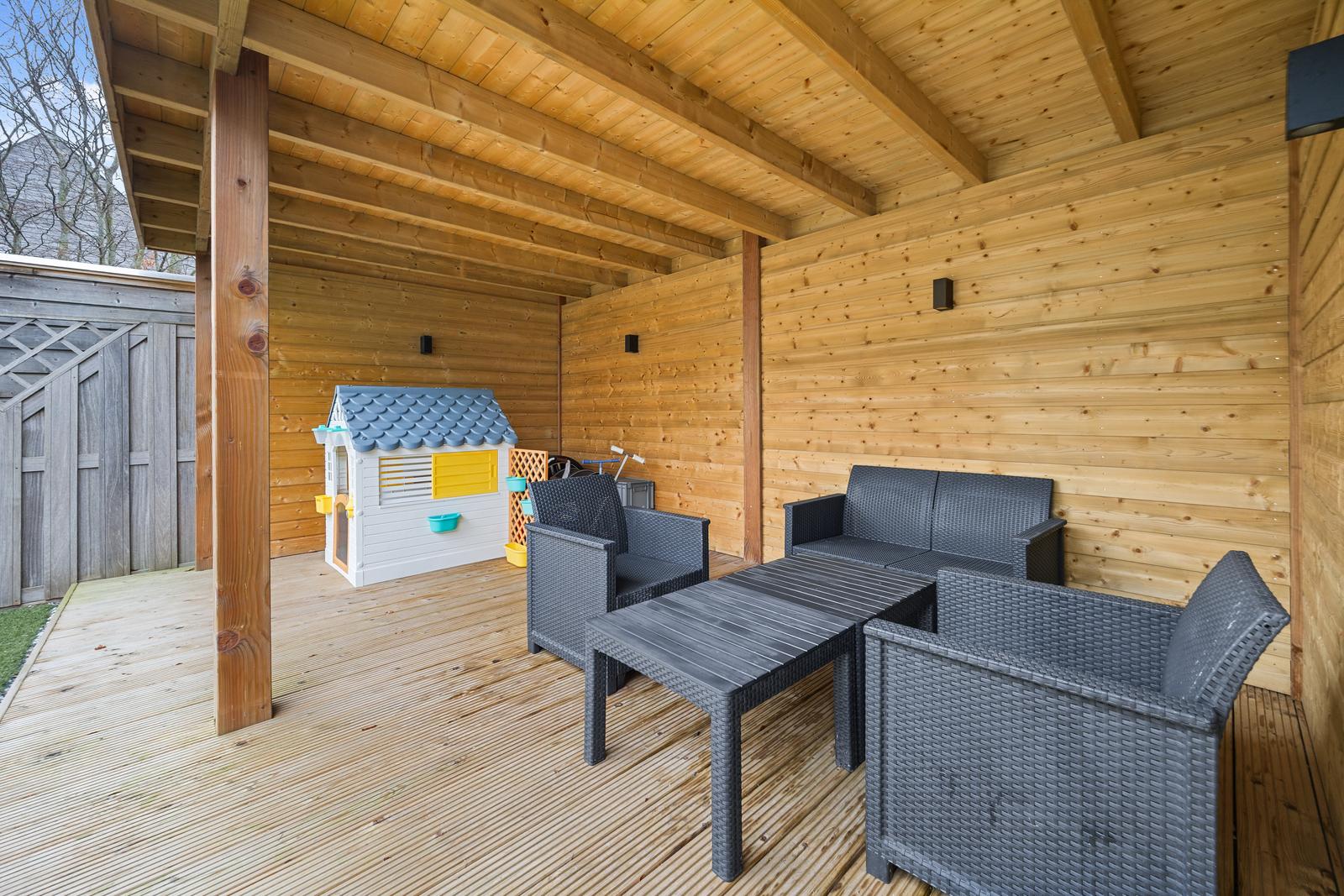 - Fraai aangelegde tuin (ZO) met Douglas houten overkapping;