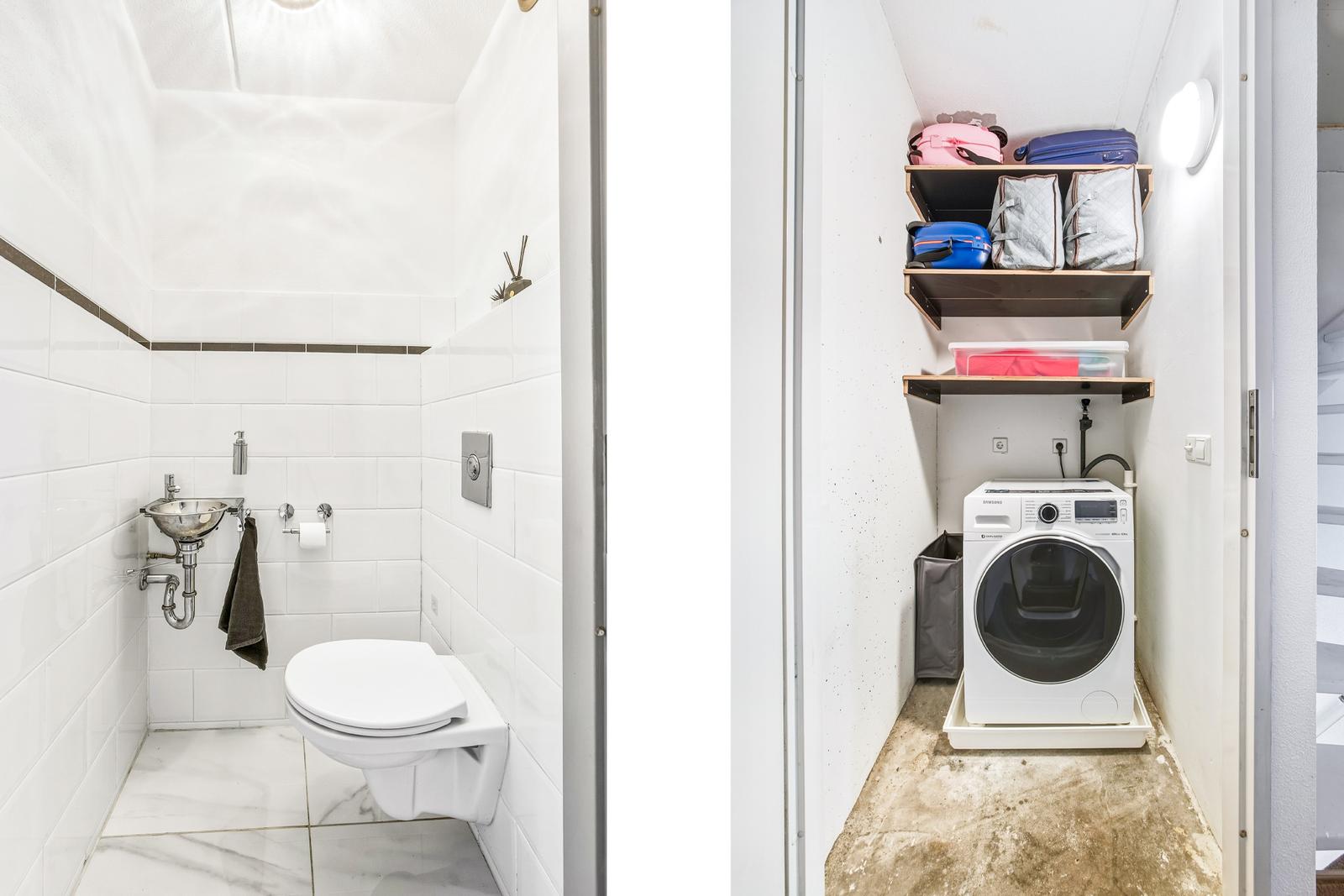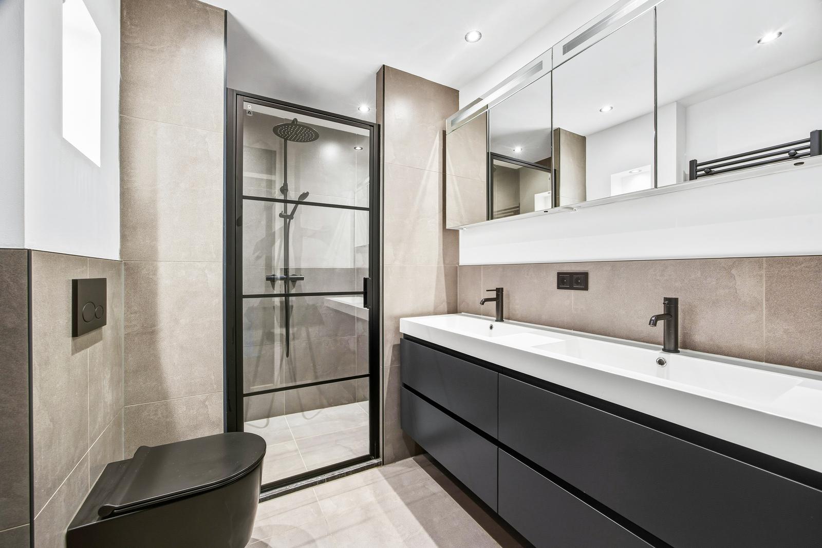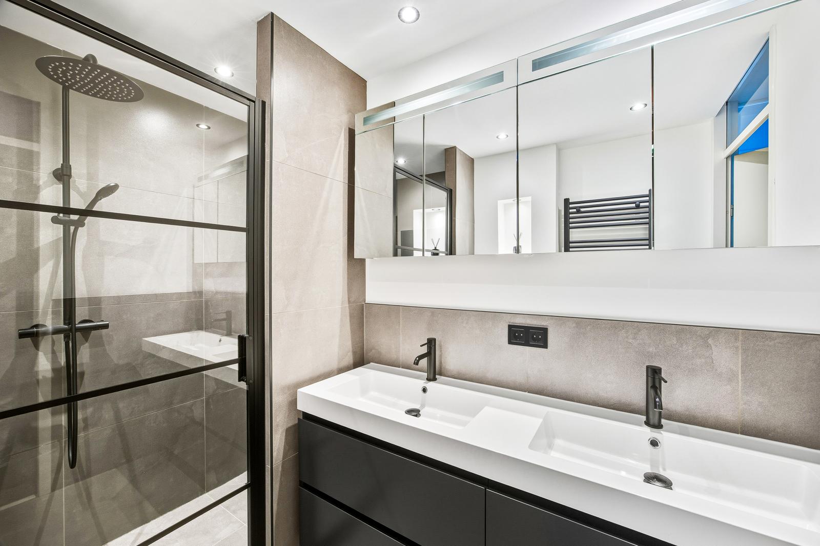 Overloop met separate wasruimte voorzien van opstelplaats voor wasmachine en droger. Ruime (gevelbrede) slaapkamer aan de voorzijde. Tweetal slaapkamers van goed formaat aan de achterzijde. Moderne (tussengelegen) badkamer met inloopdouche, dubbel wastafelmeubel, handdoekradiator en vrijhangend toilet.