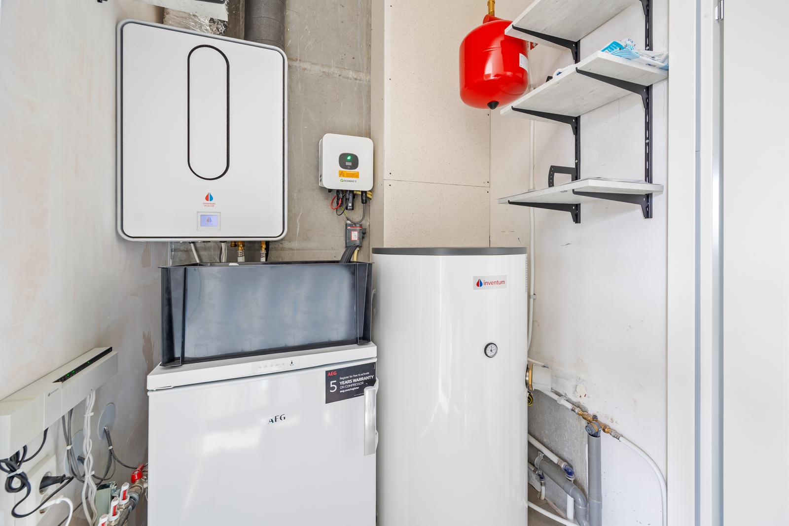 - Voorzien van hybride warmtepomp, WTW, boiler, vier zonnepanelen en een elektra omvormer;