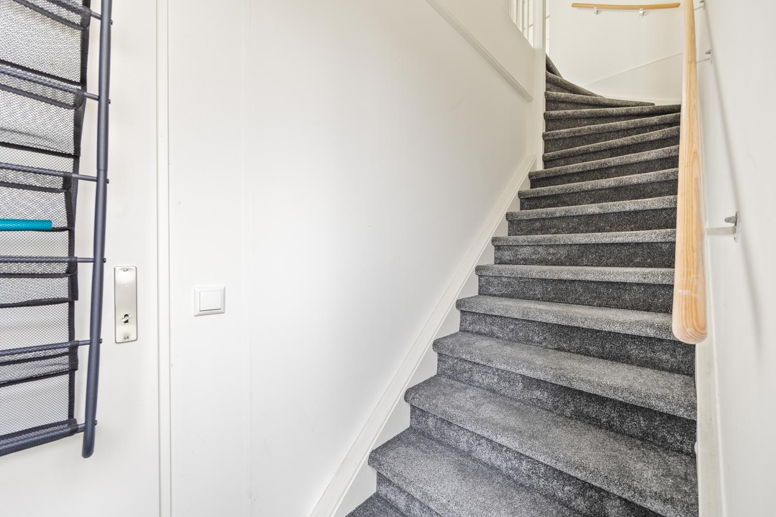 Via de eigen ingang betreed je de entree met meterkast op de begane grond met opgang naar de 1e verdieping.