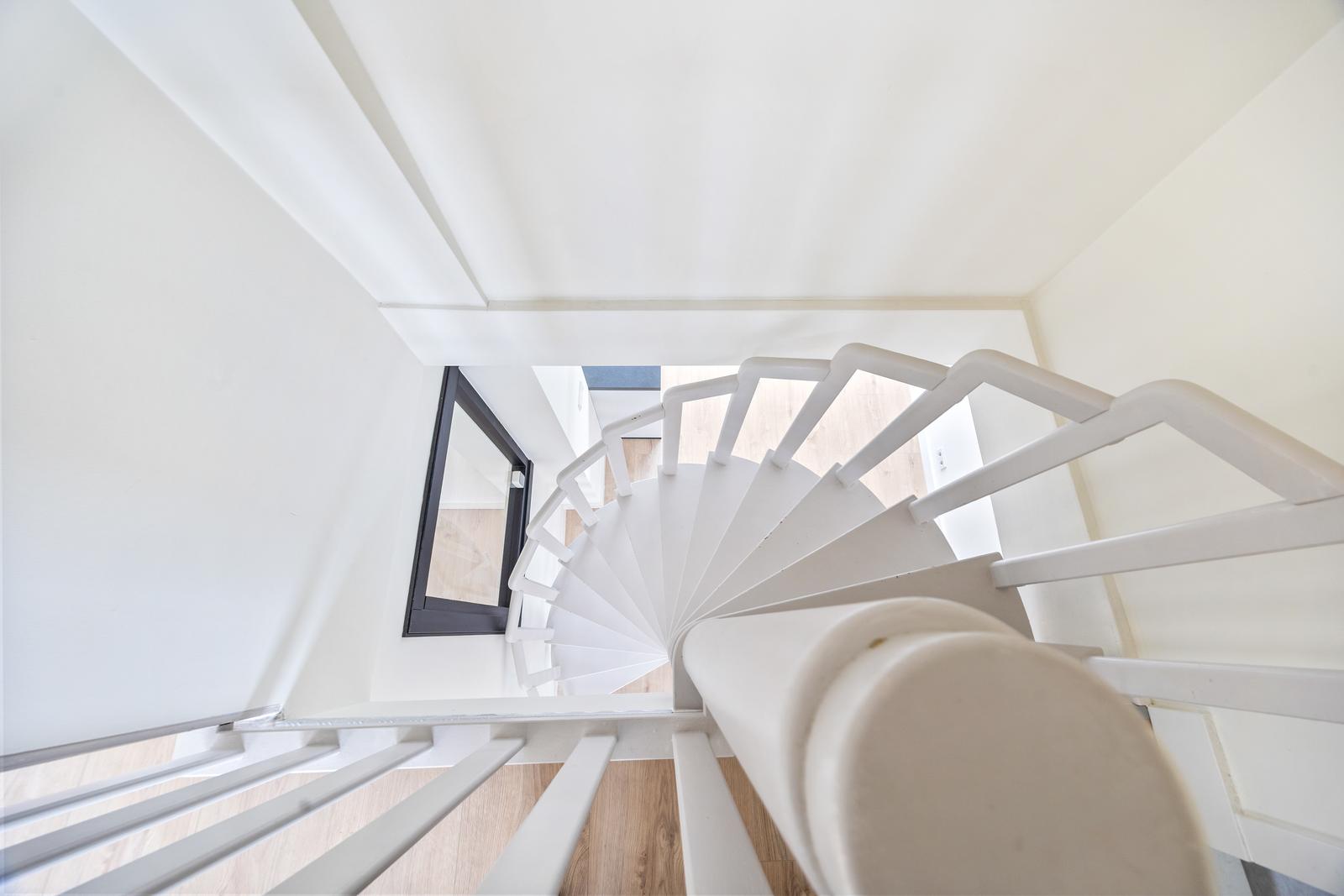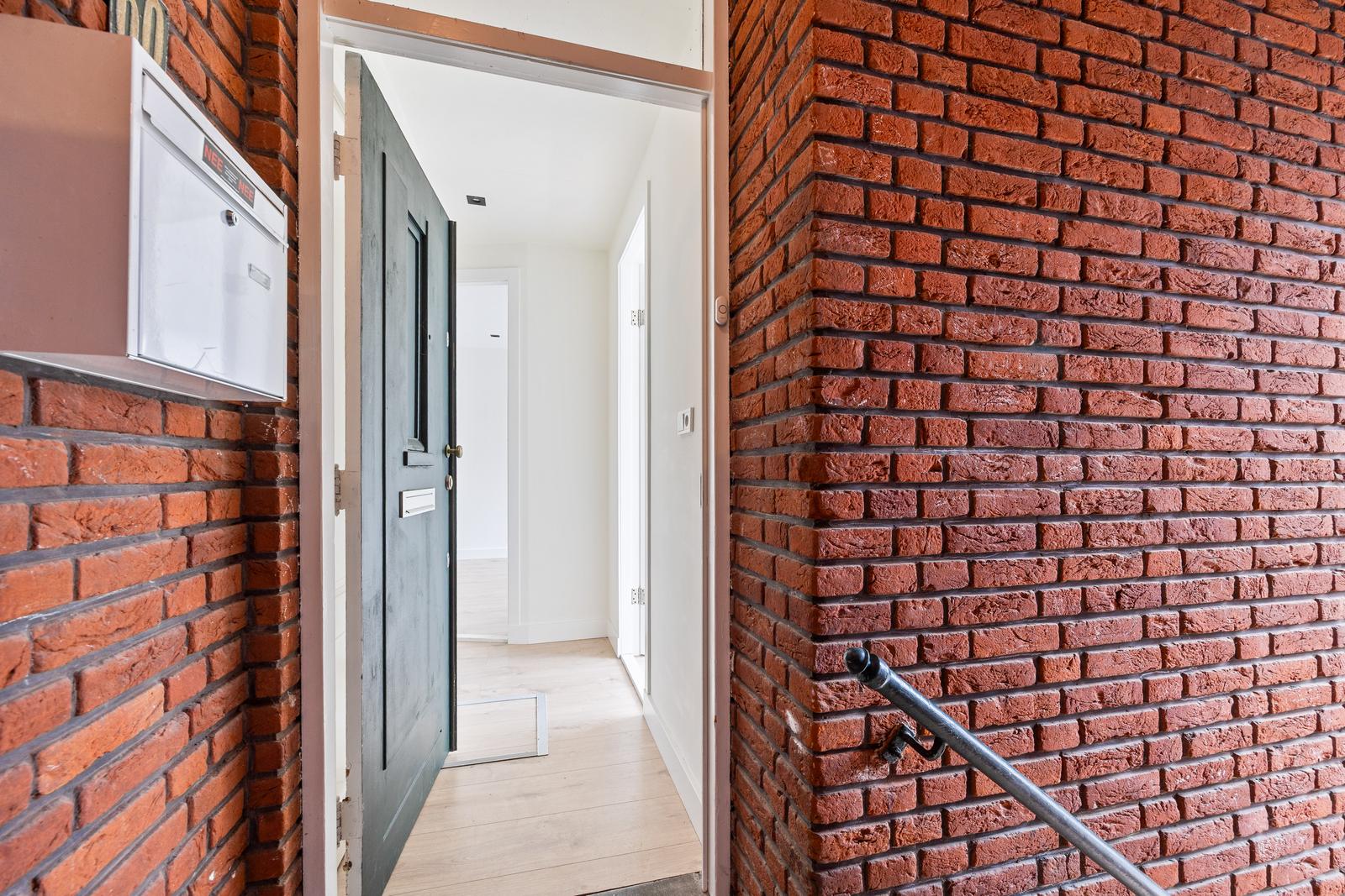 Open portiek; trap naar de eerste verdieping.