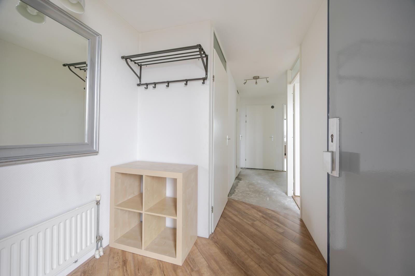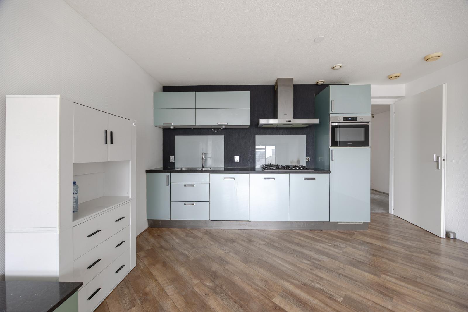Via de centraal afgesloten ingang bereikt u met de lift de entree van dit appartement op de achtste verdieping. U komt binnen in een L-vormige hal met garderoberuimte, intercom, separaat modern toilet met bidetfunctie en fonteintje, kast met technische ruimte voorzien van CV-installatie en WTW-unit, en de meterkast. Aan de achterzijde van het appartement bevinden zich twee slaapkamers, waaronder een ruime hoekkamer met wijds uitzicht. Vanuit de gang is de prachtig betegelde moderne badkamer bereikbaar, voorzien van een ruime inloopdouche, wastafelmeubel, handdoekradiator en wasmachineaansluiting. De royale woon-/eetkamer met open keuken ligt aan de voorzijde, met uitzicht op de kade. Vanuit de woonkamer is de derde slaapkamer bereikbaar, die aansluit op de loggia. Door de gehele woning ligt een nette eiken lamelparketvloer.