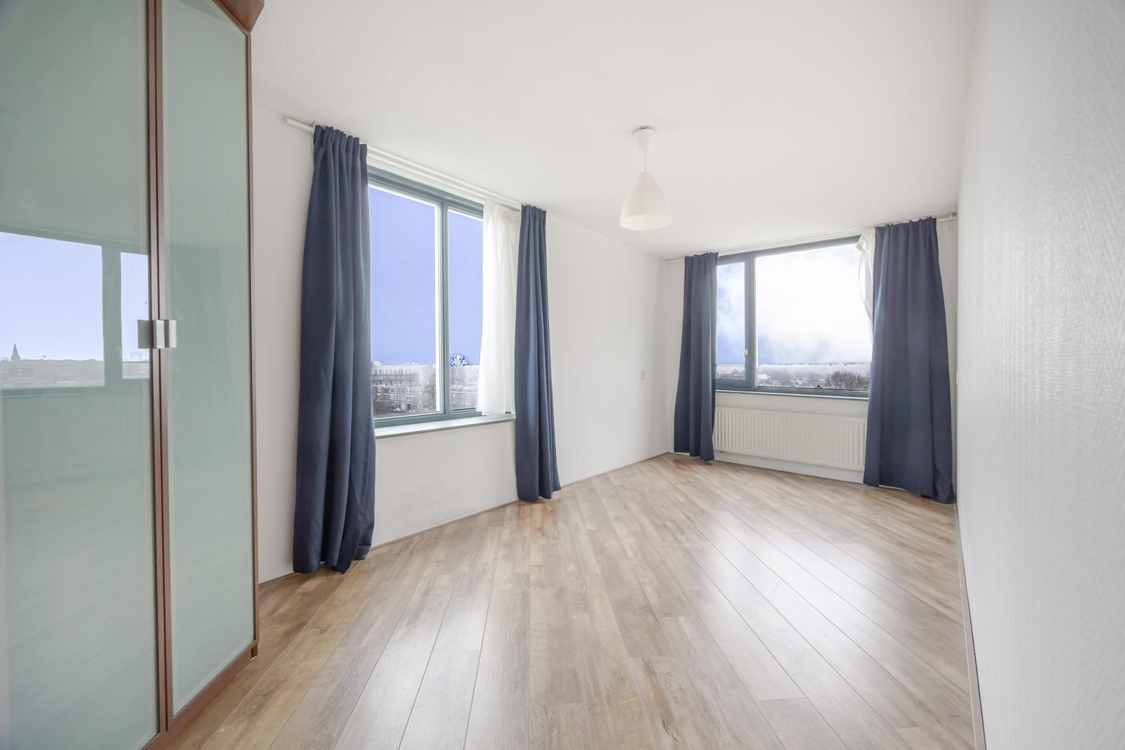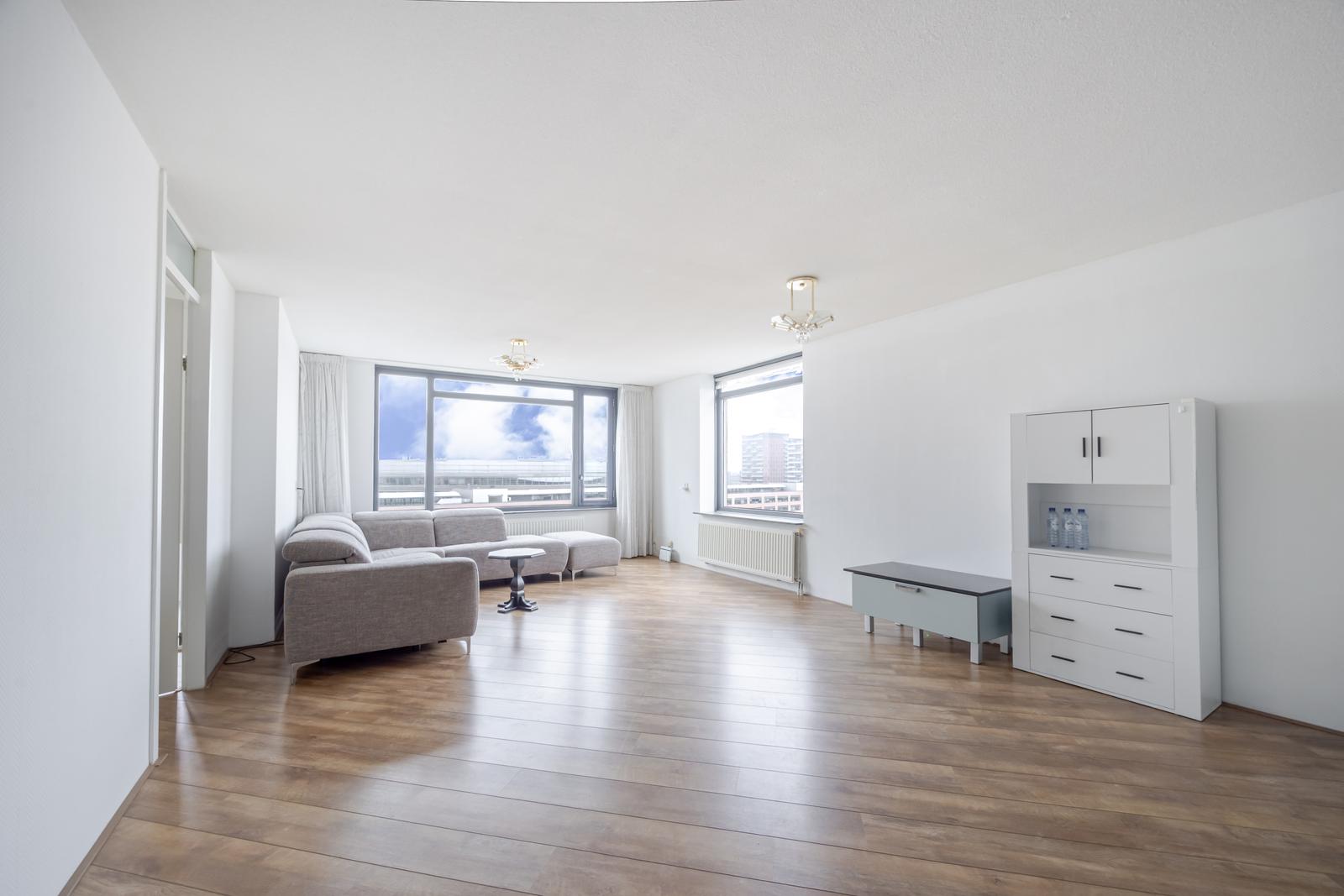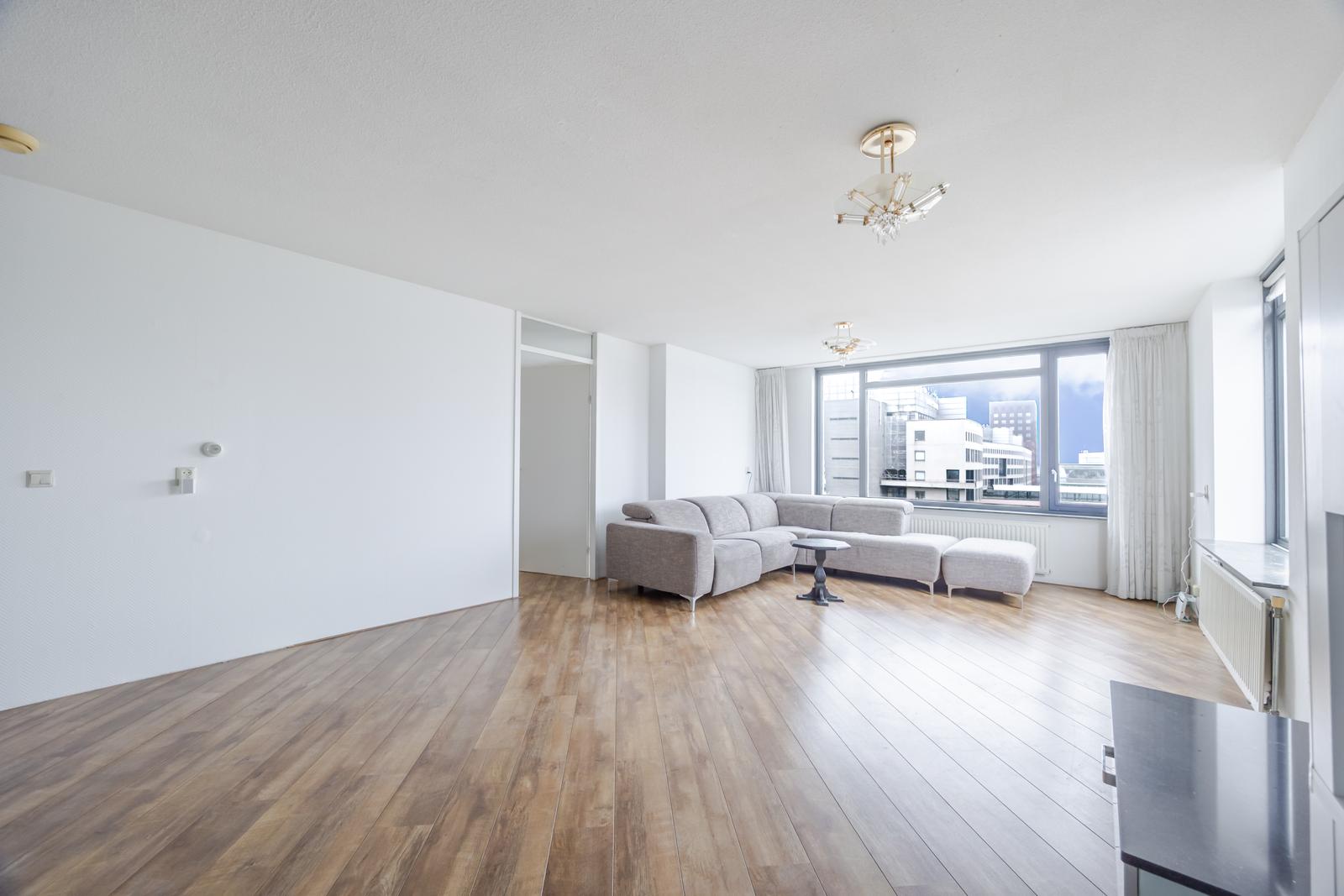 Heerlijk licht en gemoderniseerd 4-kamer top – hoekappartement op de achtste verdieping met prachtig uitzicht over de Neherkade.