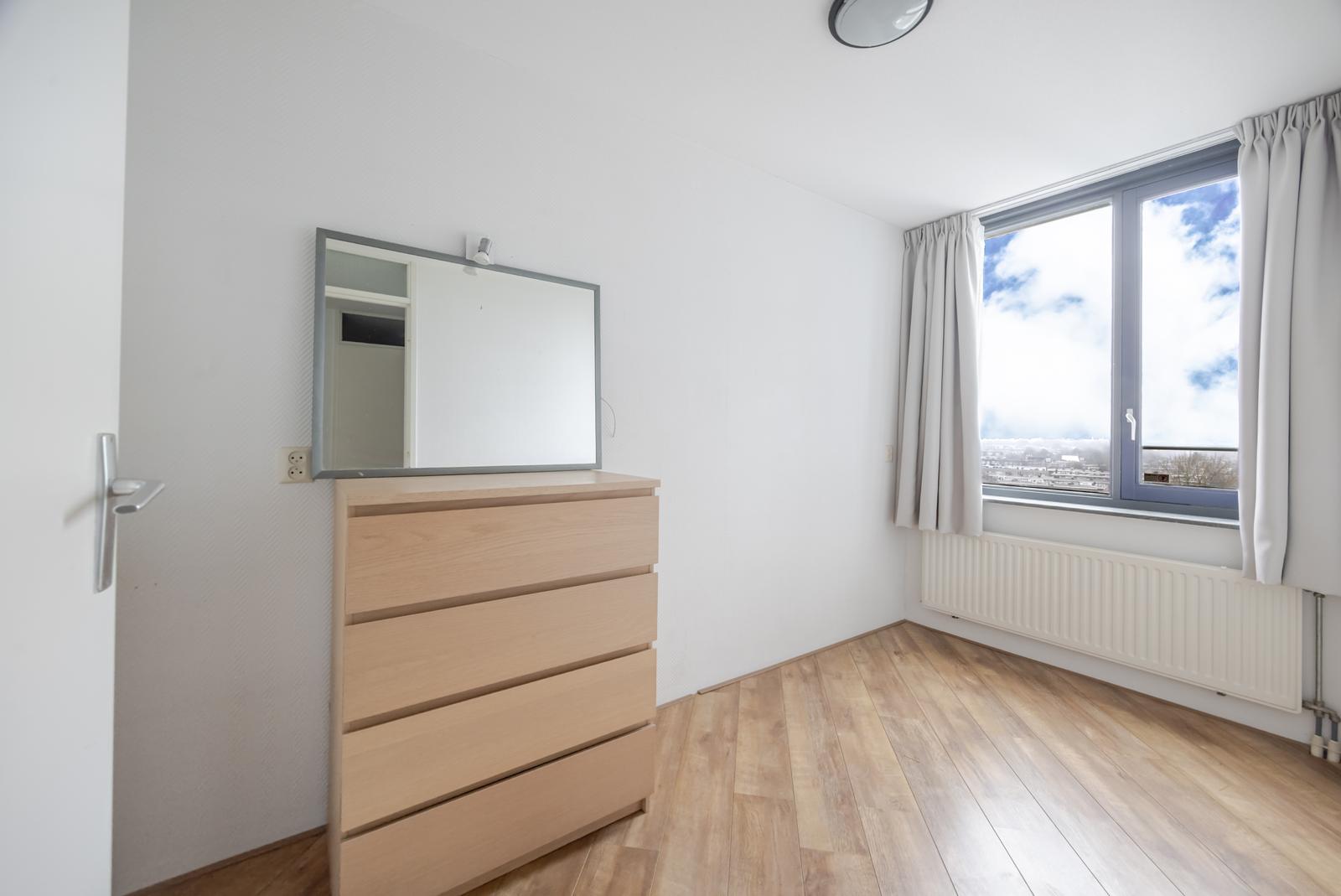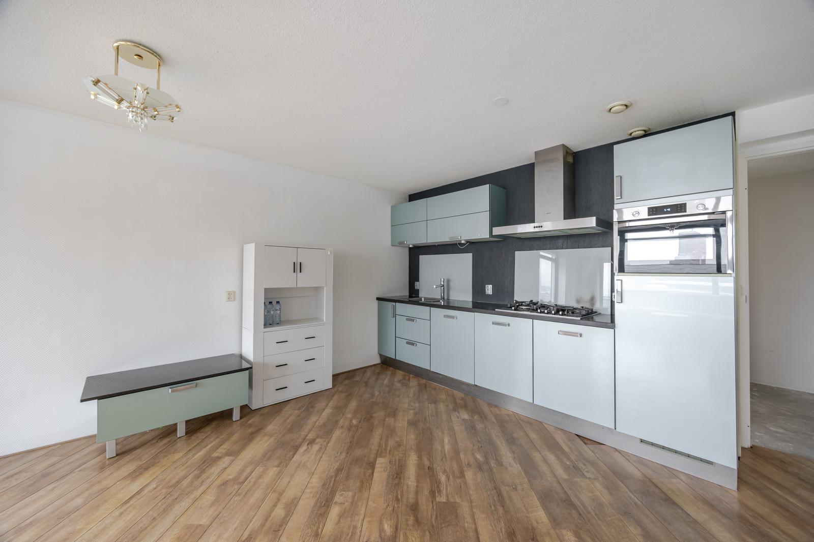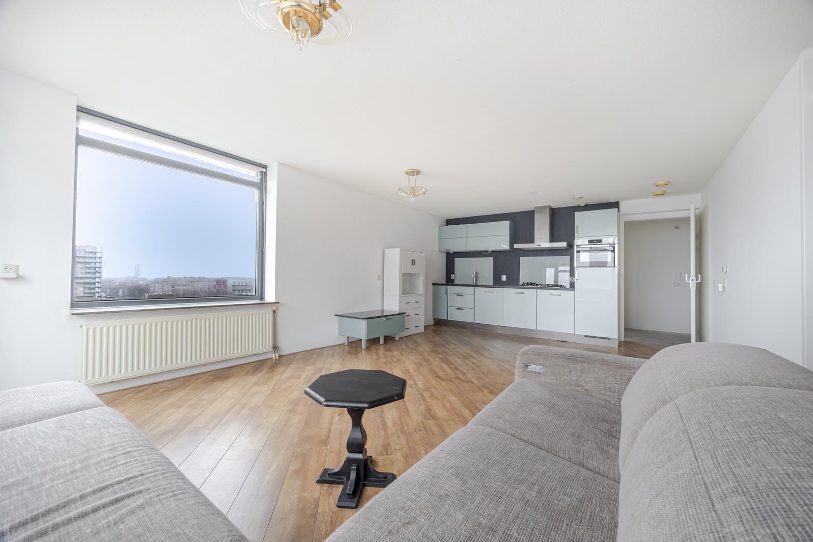 Heerlijk licht en gemoderniseerd 4-kamer top – hoekappartement op de achtste verdieping met prachtig uitzicht over de Neherkade.