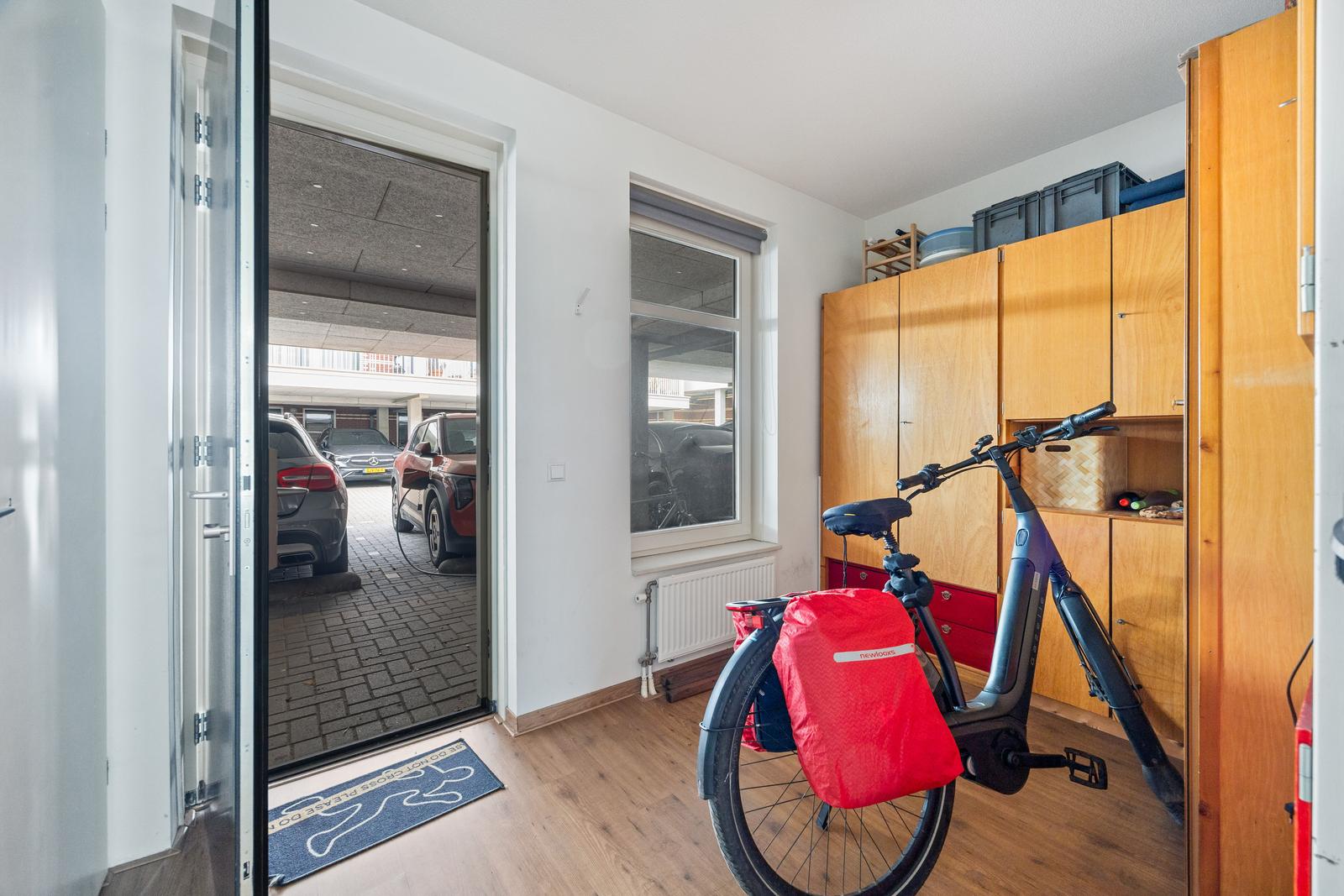 Entree aan de voorzijde; hal met garderobe, meterkast en trapopgang; ruime slaapkamer aan de voorzijde (ook geschikt als kantoor of logeerkamer); inpandige berging aan de achterzijde met trapkast, moderne separaat toilet met fonteintje en toegang tot de overdekte privé parkeerplaats op afgesloten terrein.