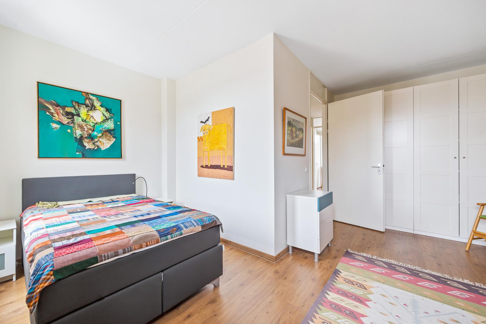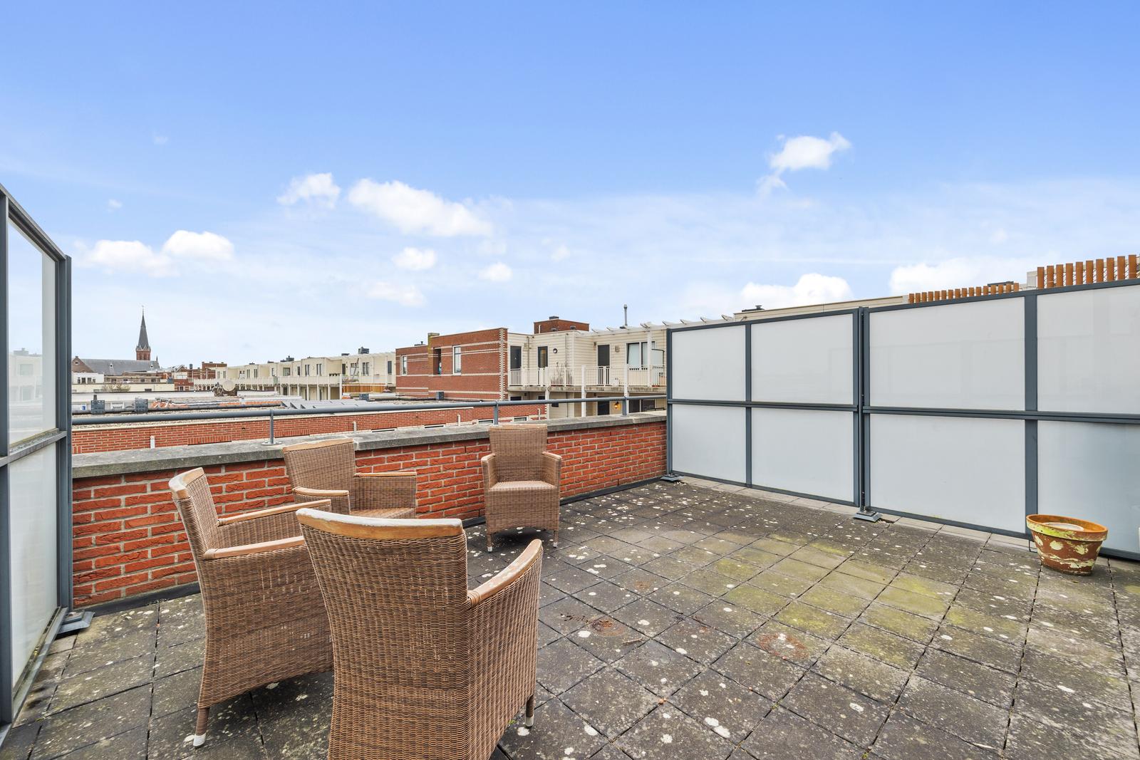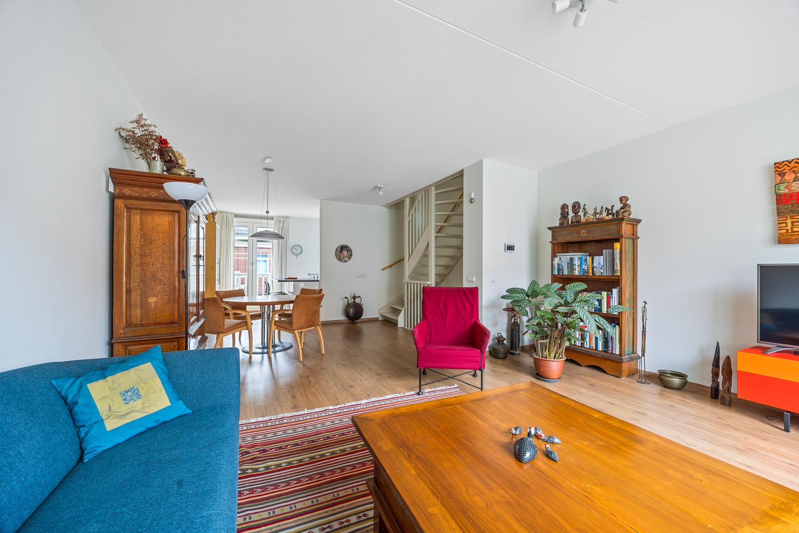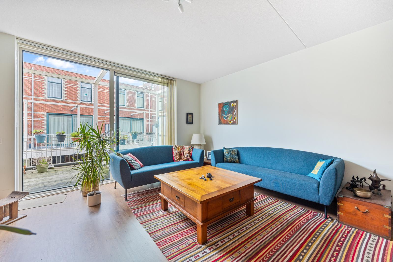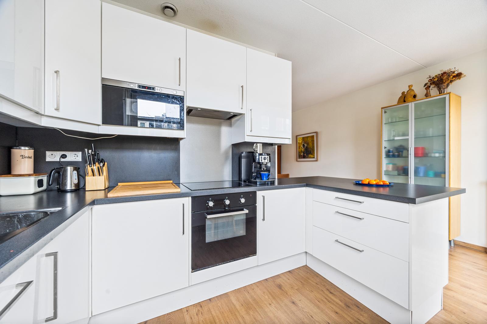 Royale en lichte living over de volle verdieping met moderne U-vormige open keuken aan de voorzijde voorzien van diverse inbouwapparatuur, een gezellige ontbijtbar en een Frans balkon. Aan de achterzijde bevindt zich het zitgedeelte met schuifpui naar het zonnige terras op het noordwesten met middag- en avondzon.
