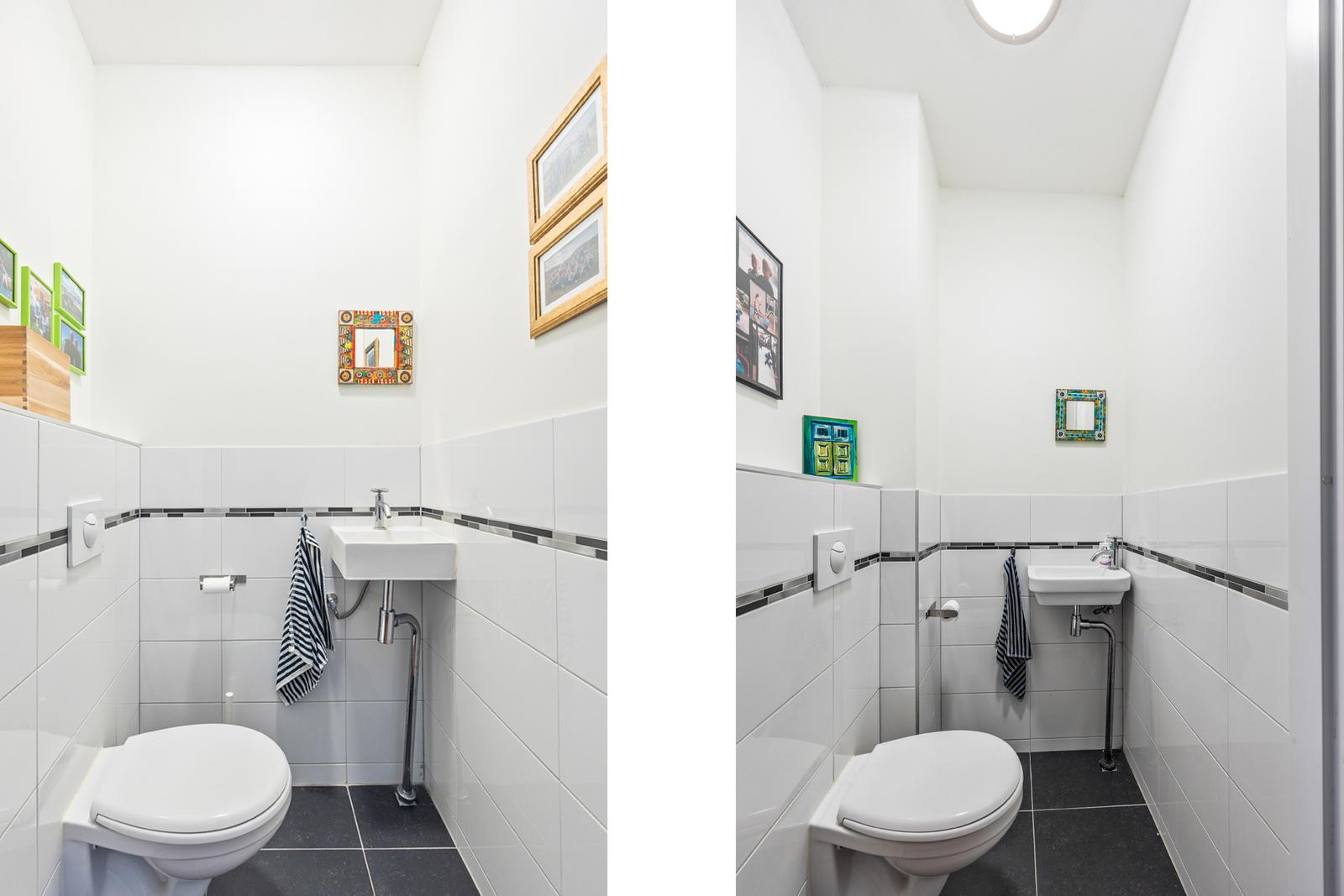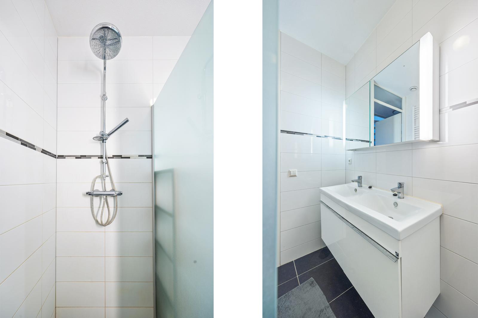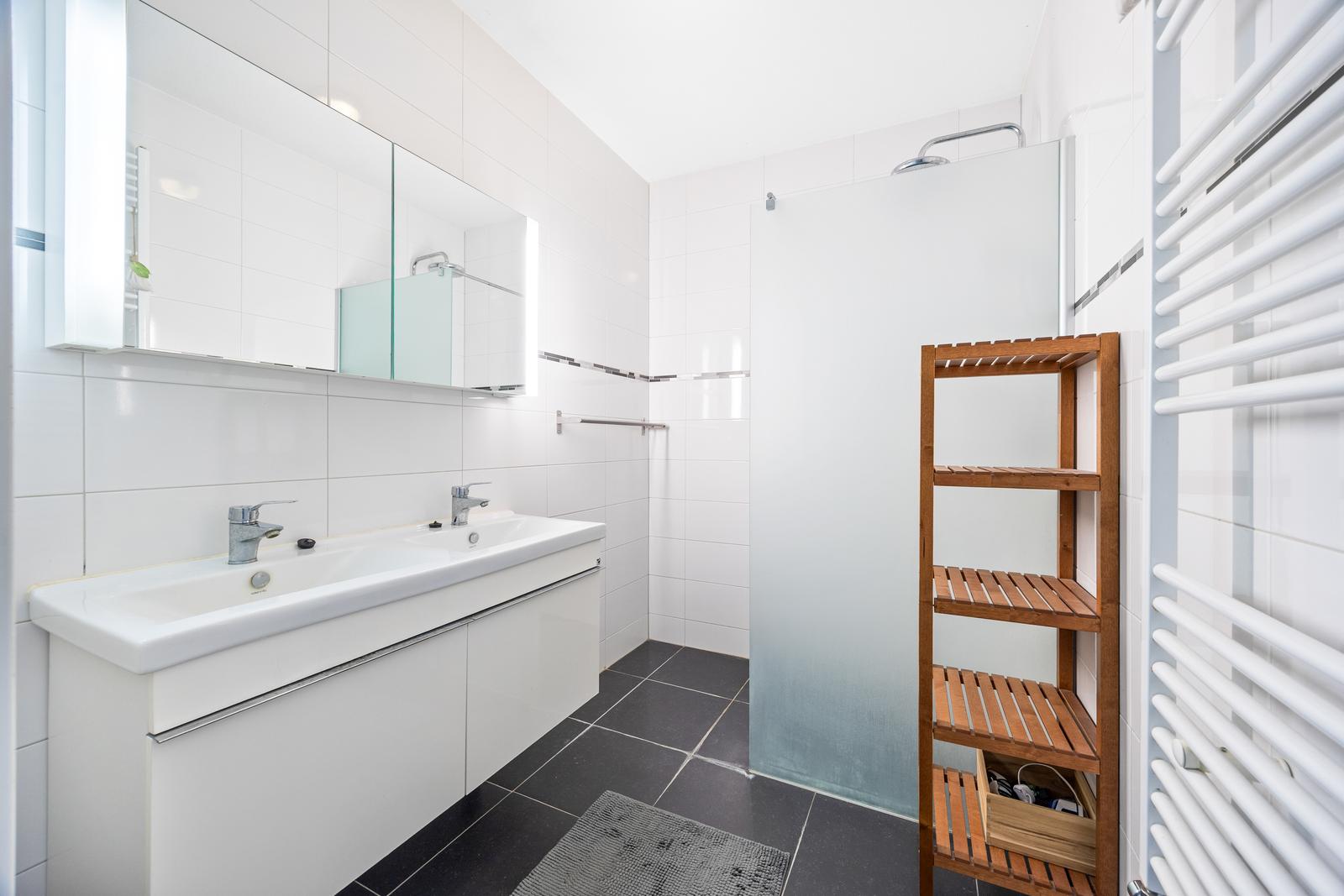 Overloop met modern separaat toilet met fonteintje; ruime L-vormige hoofdslaapkamer aan de voorzijde en een tweede ruime slaapkamer over de volle breedte aan de achterzijde; moderne (tussengelegen) badkamer met inloopdouche v.v. hand- en regendouche, dubbel wastafelmeubel en handdoekradiator.