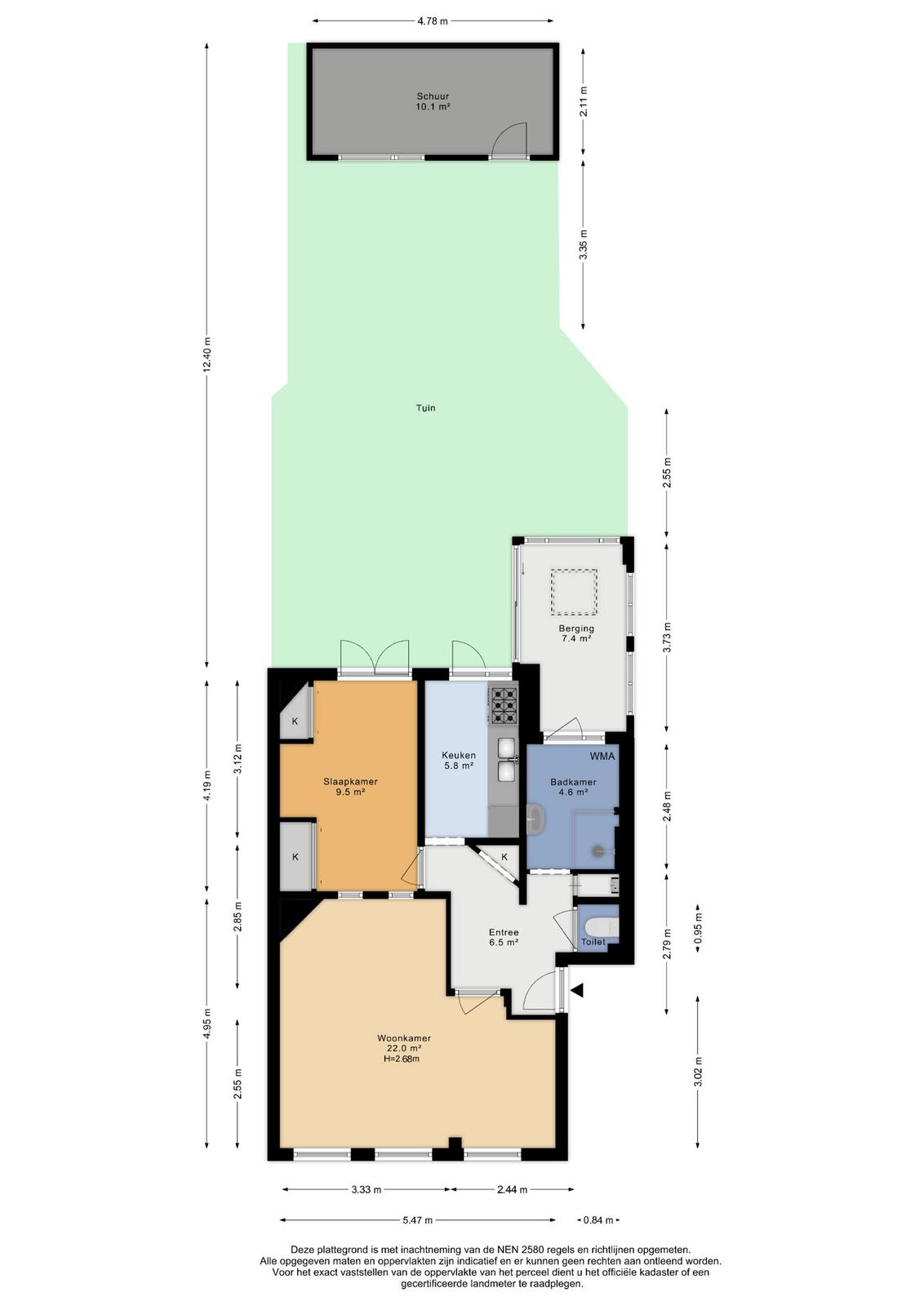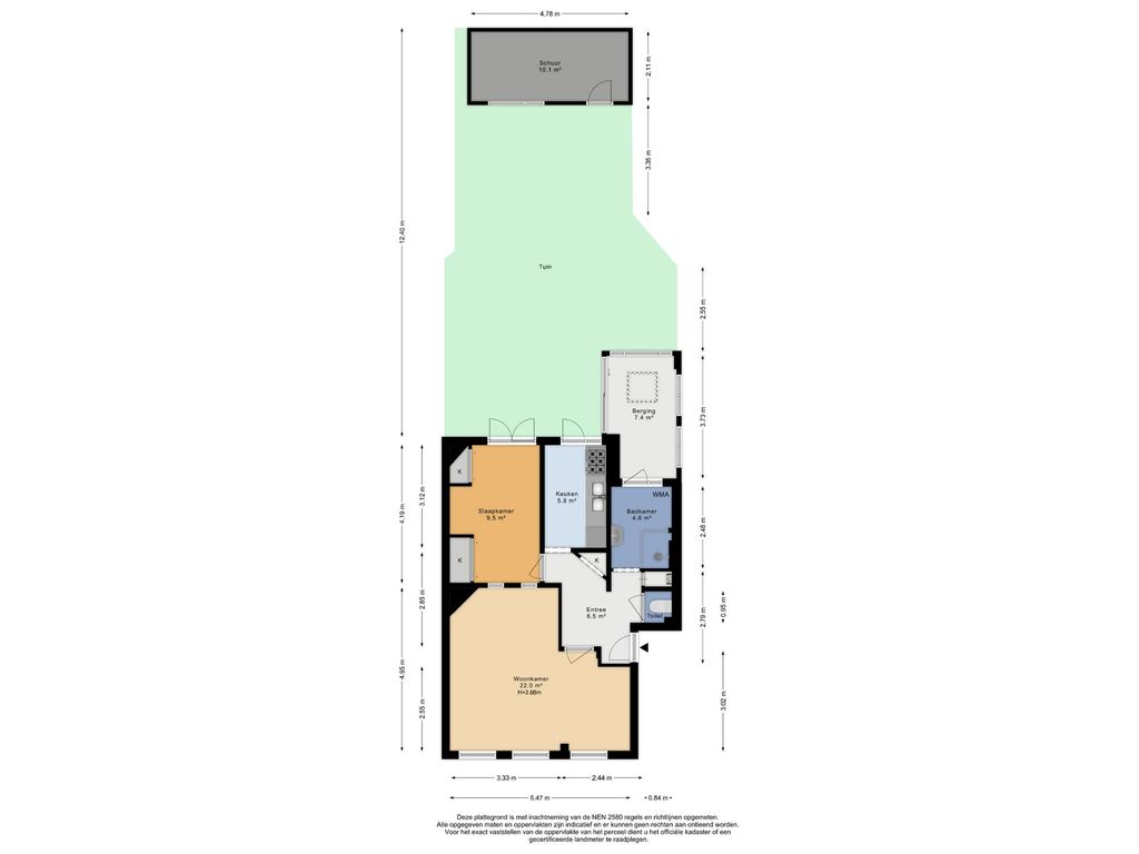 – Uitbouw van ca. 7 m² is niet meegenomen in het woonoppervlak;
