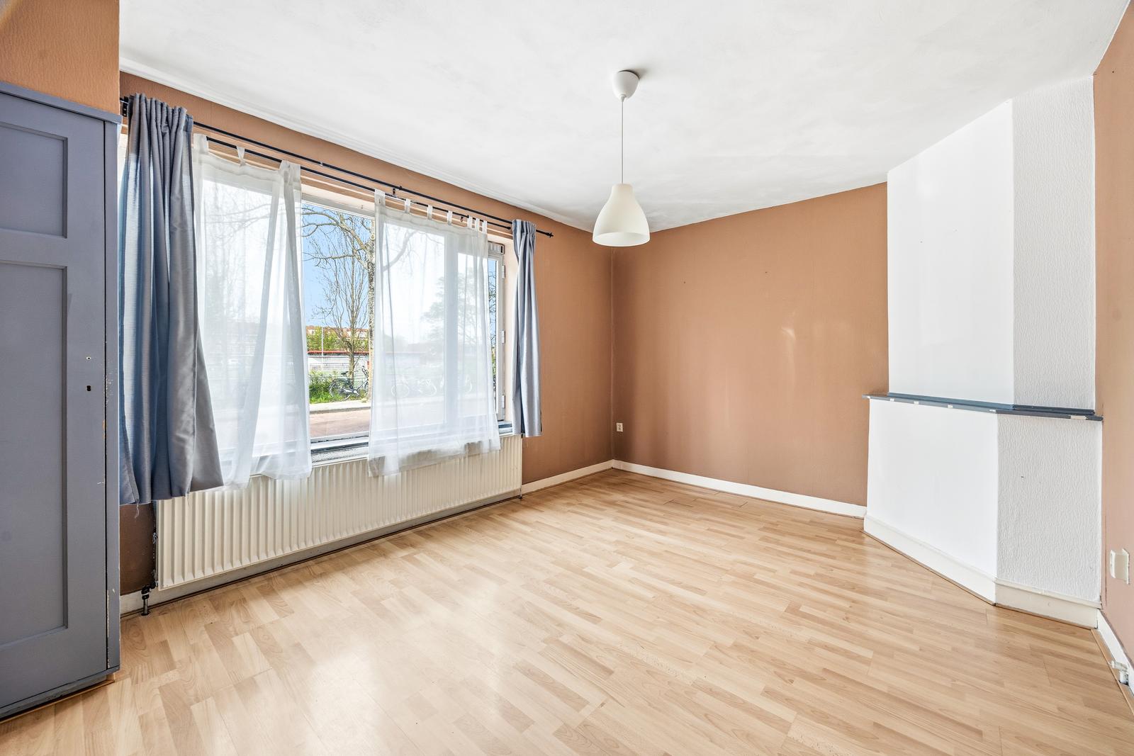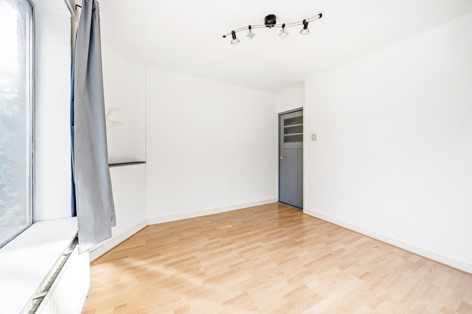 Centraal in de woning gelegen woonkamer met uitzicht op het naastgelegen voetbalveld. Aan de voorzijde bevinden zich twee slaapkamers, waaronder de hoofdslaapkamer. Aan de achterzijde ligt een derde slaapkamer met openslaande deuren naar de tuin.