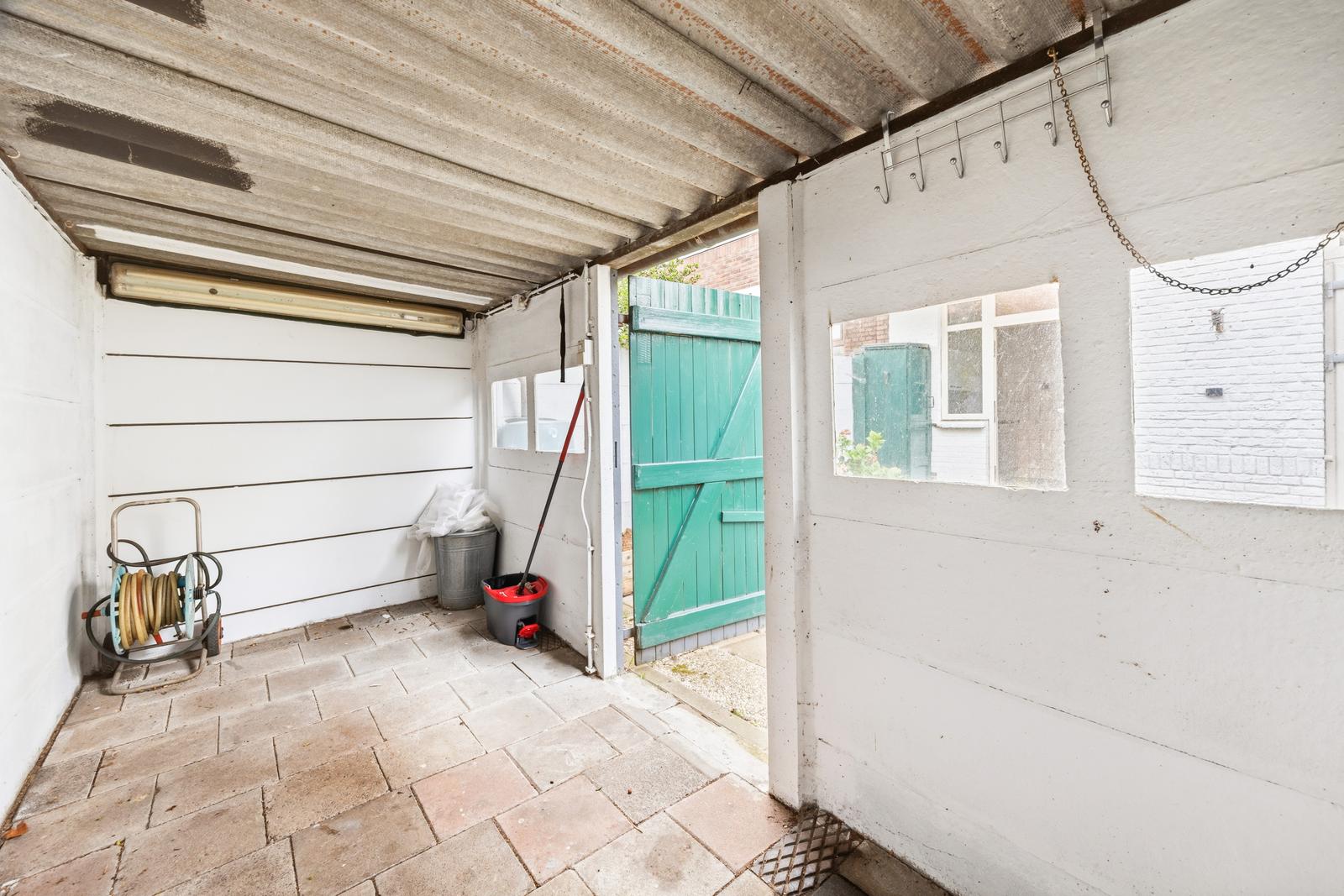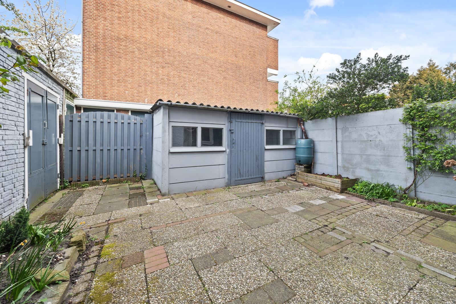 - Achtertuin NW met berging en zijtoegang.;