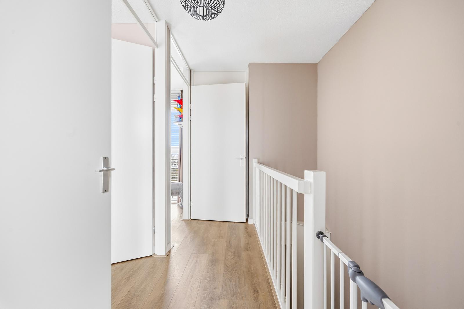 Overloop met technische ruimte voor CV-combiketel en warmte terugwin ventilatie systeem; royale slaapkamer aan de achterzijde, naastgelegen een beknopte studeer/slaapkamer, ruime slaapkamer aan de voorzijde.