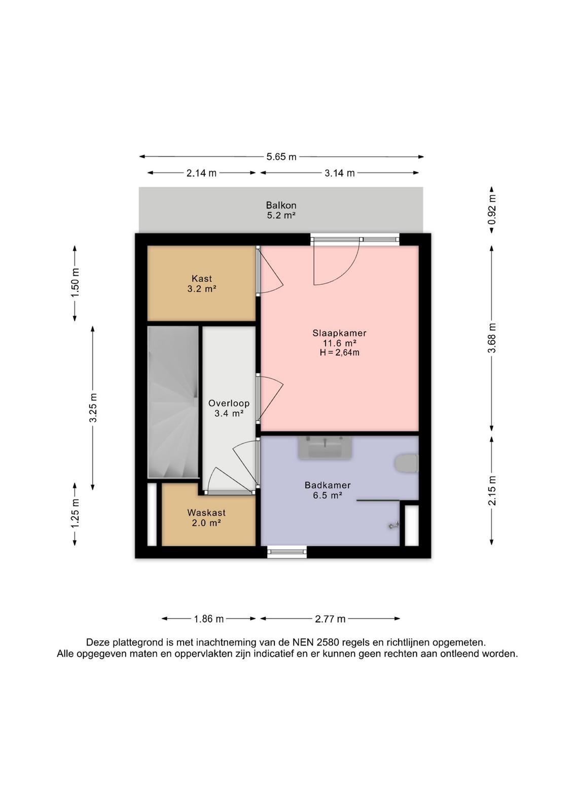 - Exact gemeten volgens NEN2580.