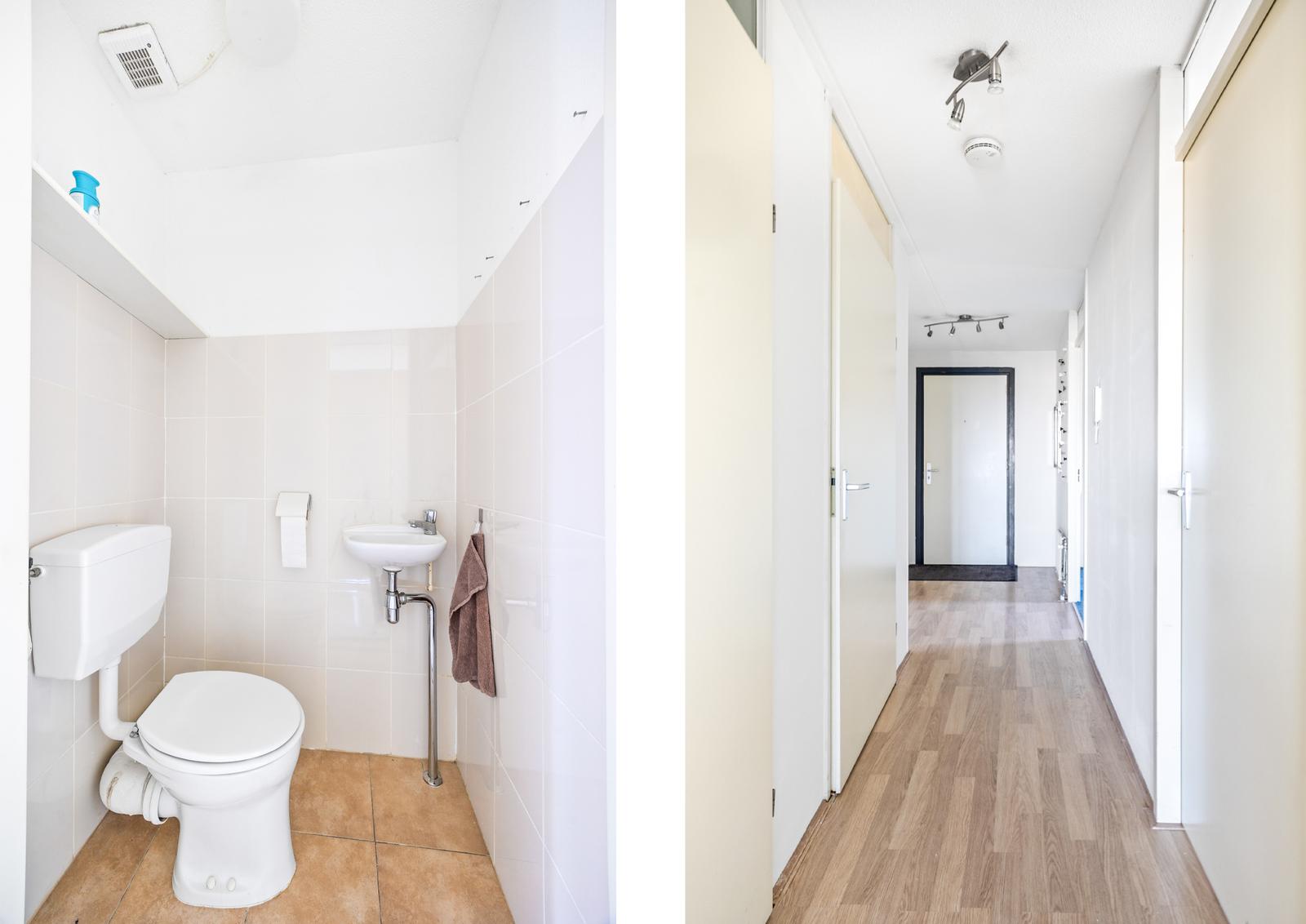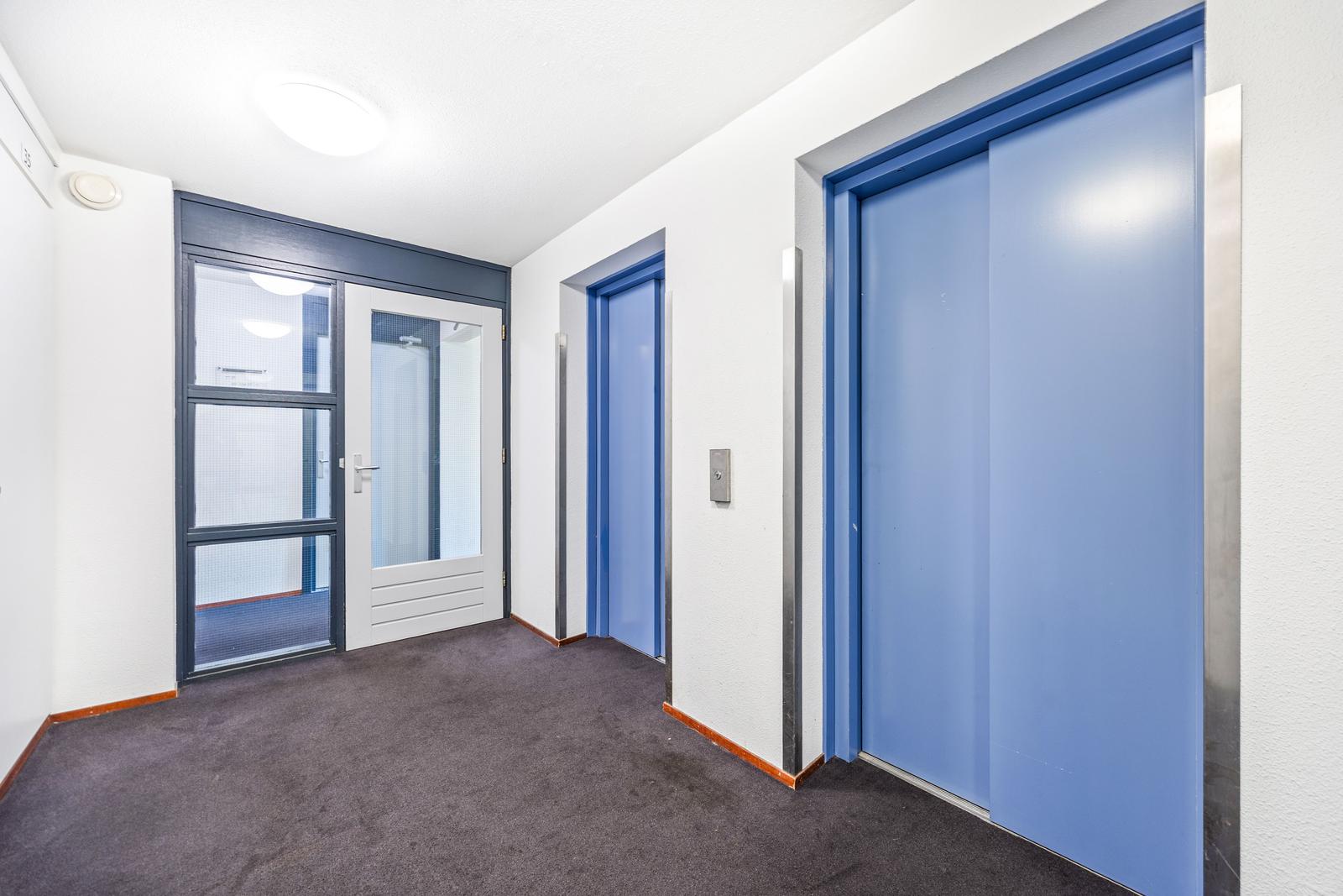 Entree op begane grond met bellen-en brievenbustableau. Lift naar 4e verdieping.