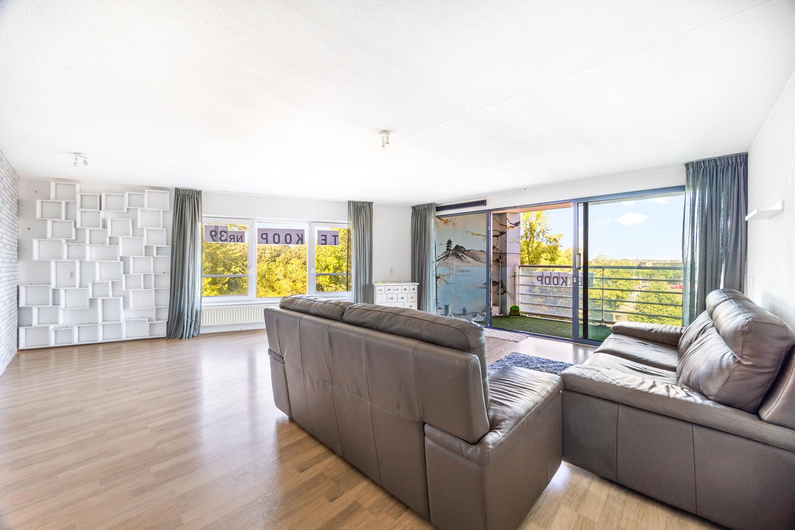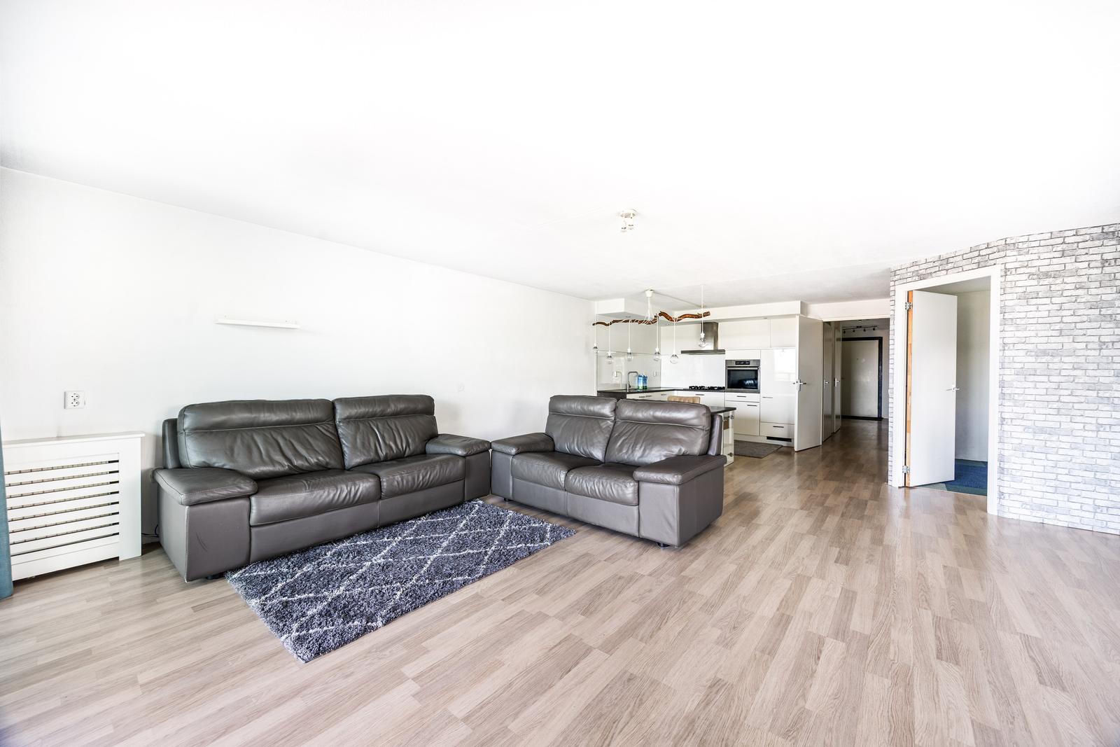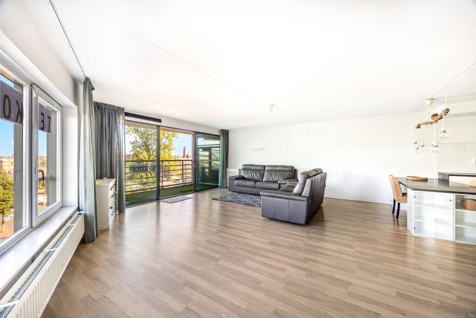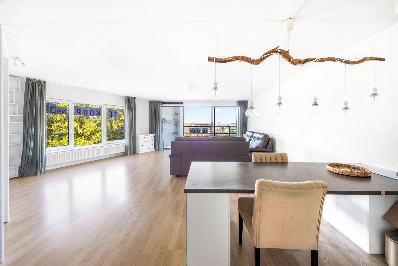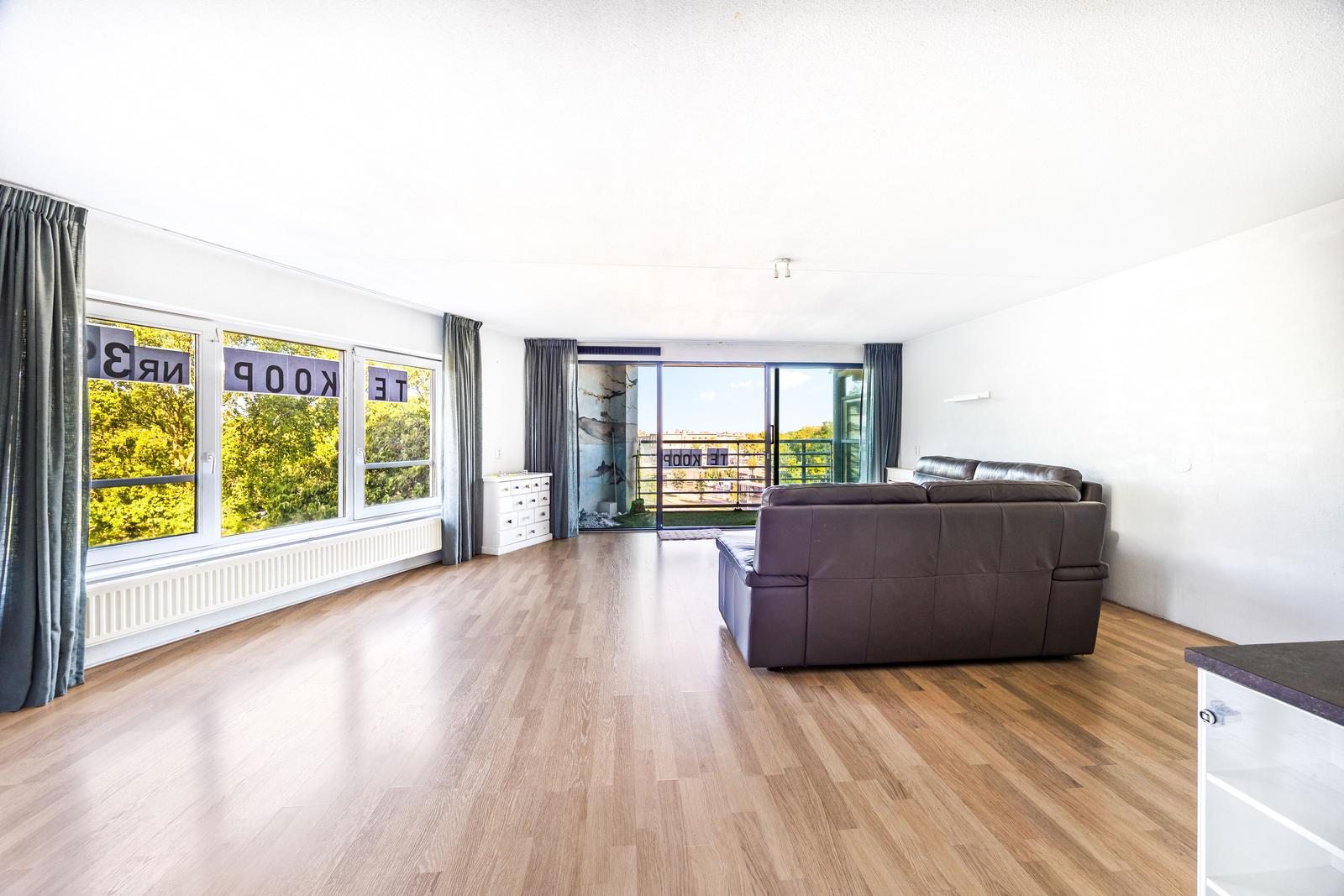 Ruime en lichte woonkamer (36,7m2) met balkon op het noordwesten.