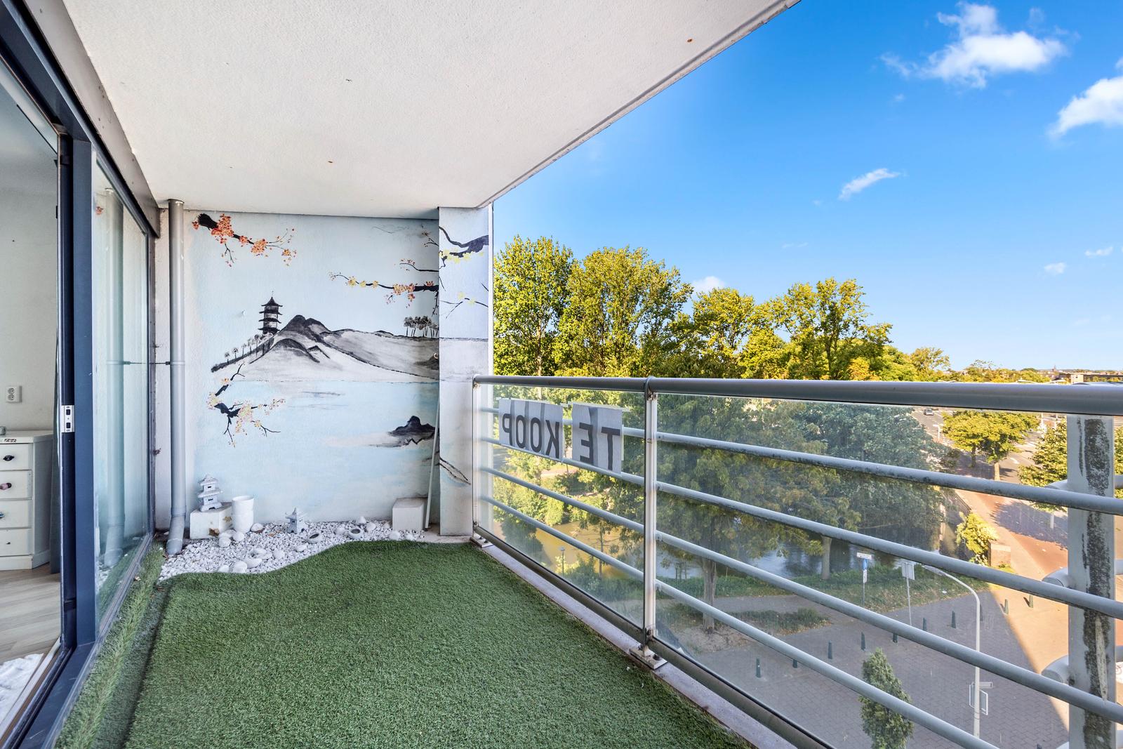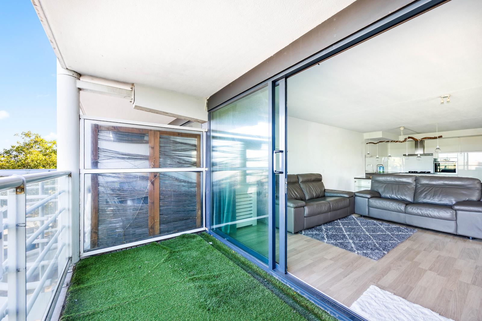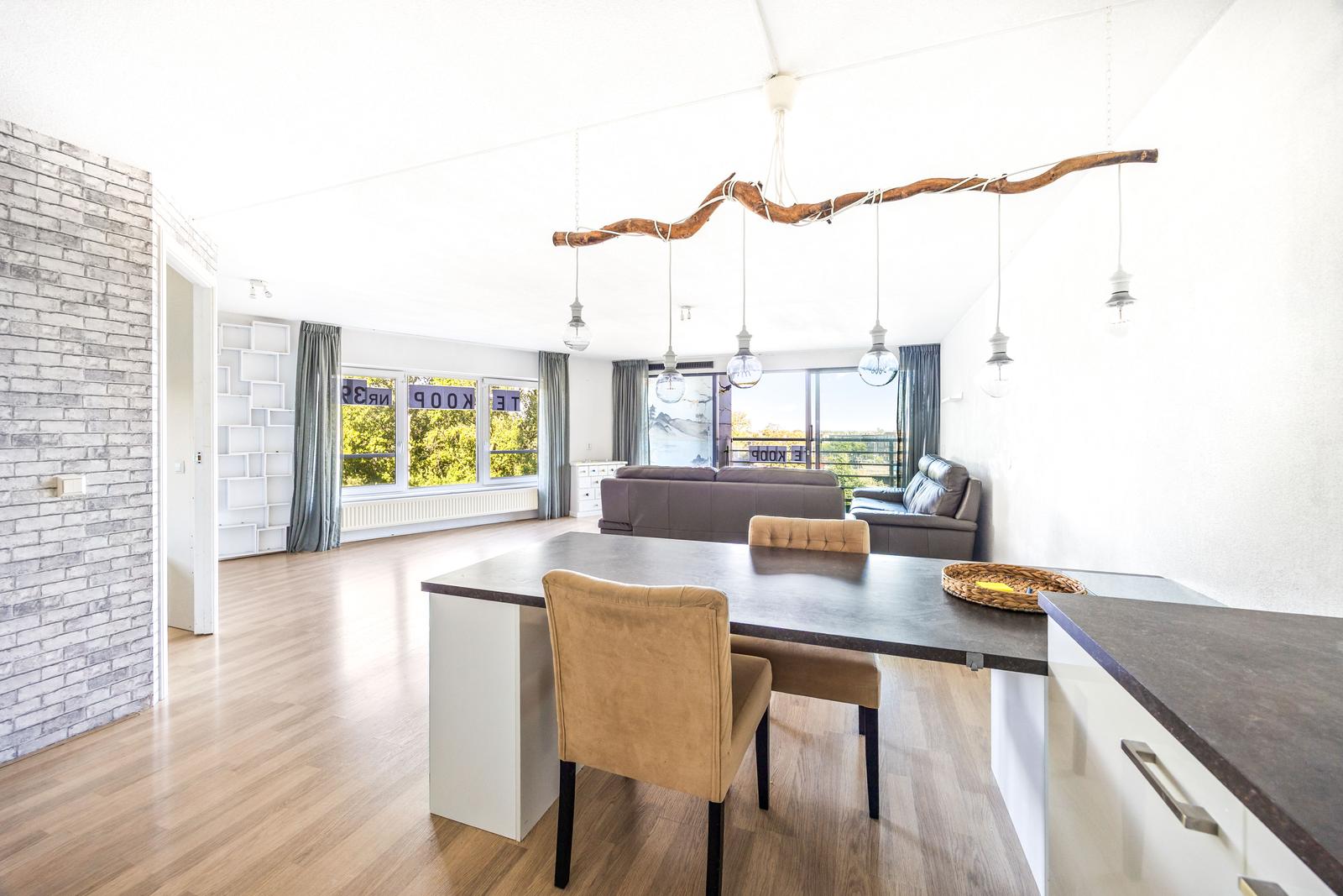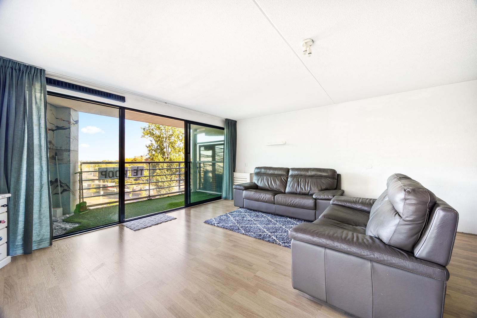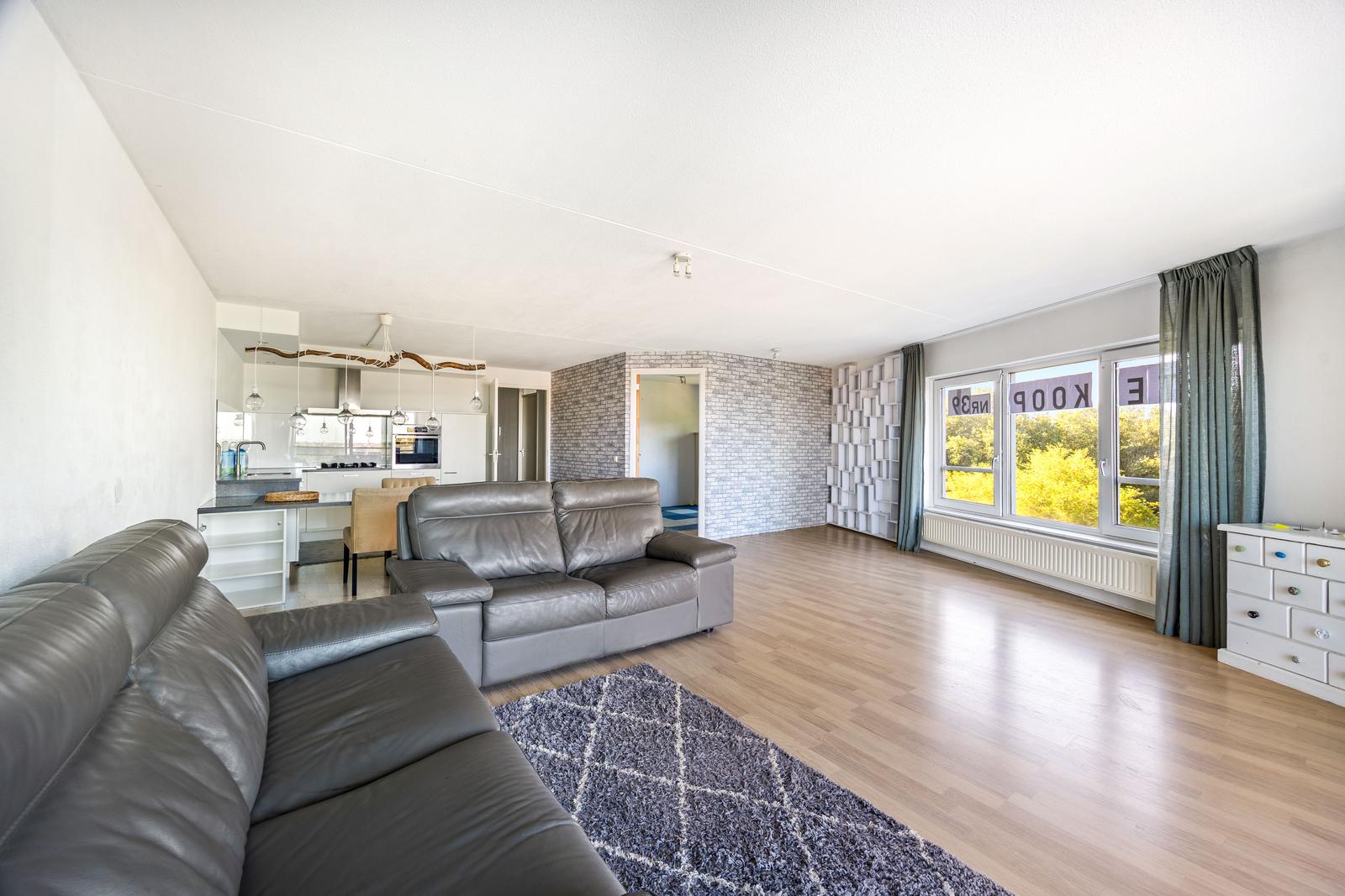 Ruime en lichte woonkamer (36,7m2) met balkon op het noordwesten.