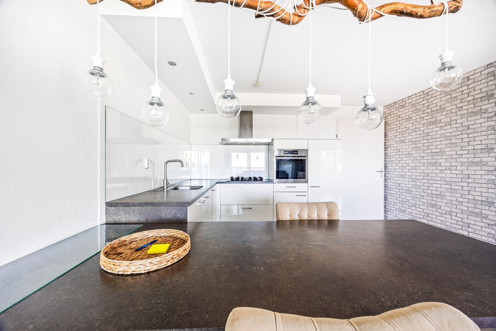 Open keuken (2019) voorzien van oven, 5-pits gaskookplaat, afzuigkap, carrouselkast en koel-/vriescombinatie.