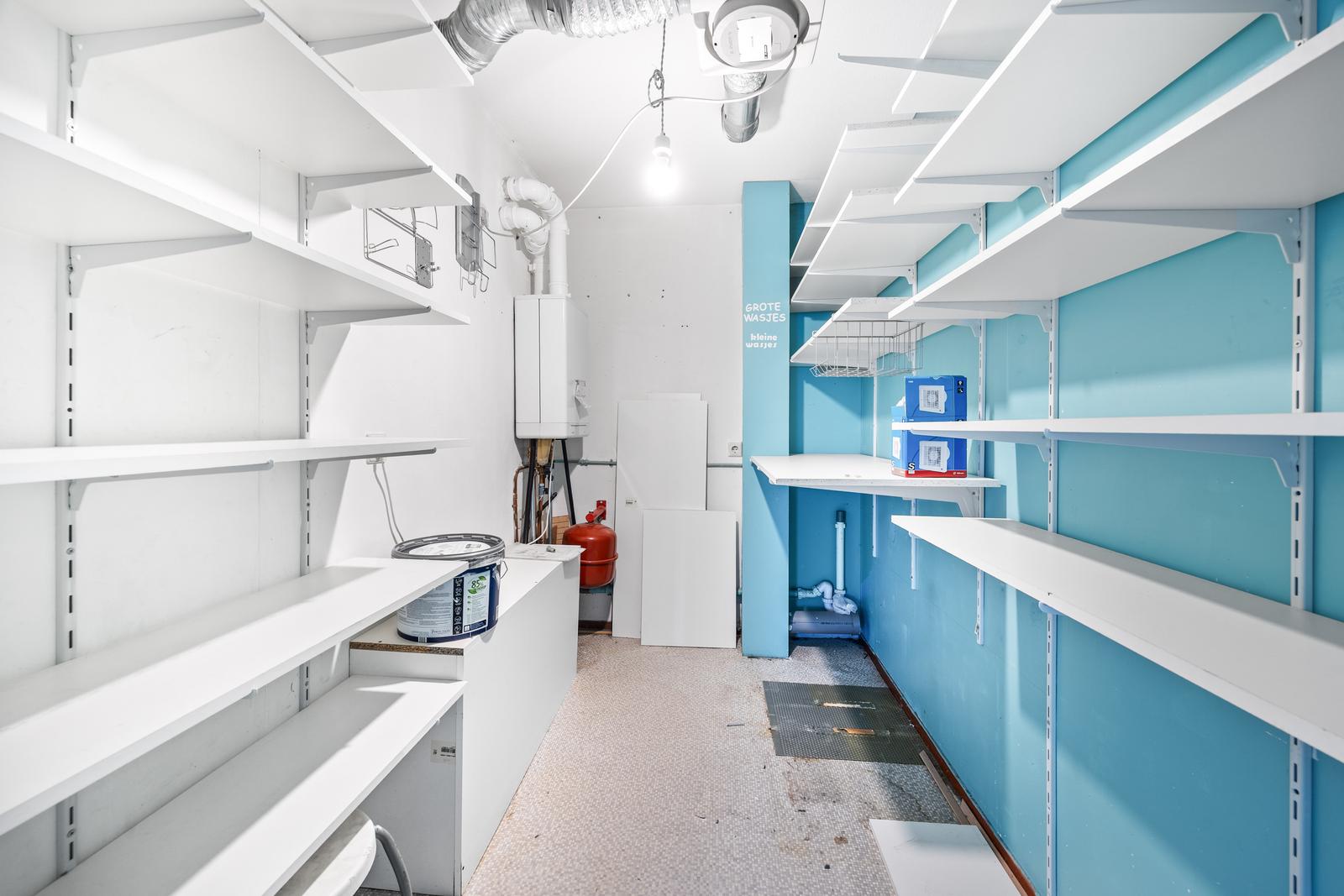 Wasruimte met opstelplaats voor wasmachine en droger en C.V. ketel.